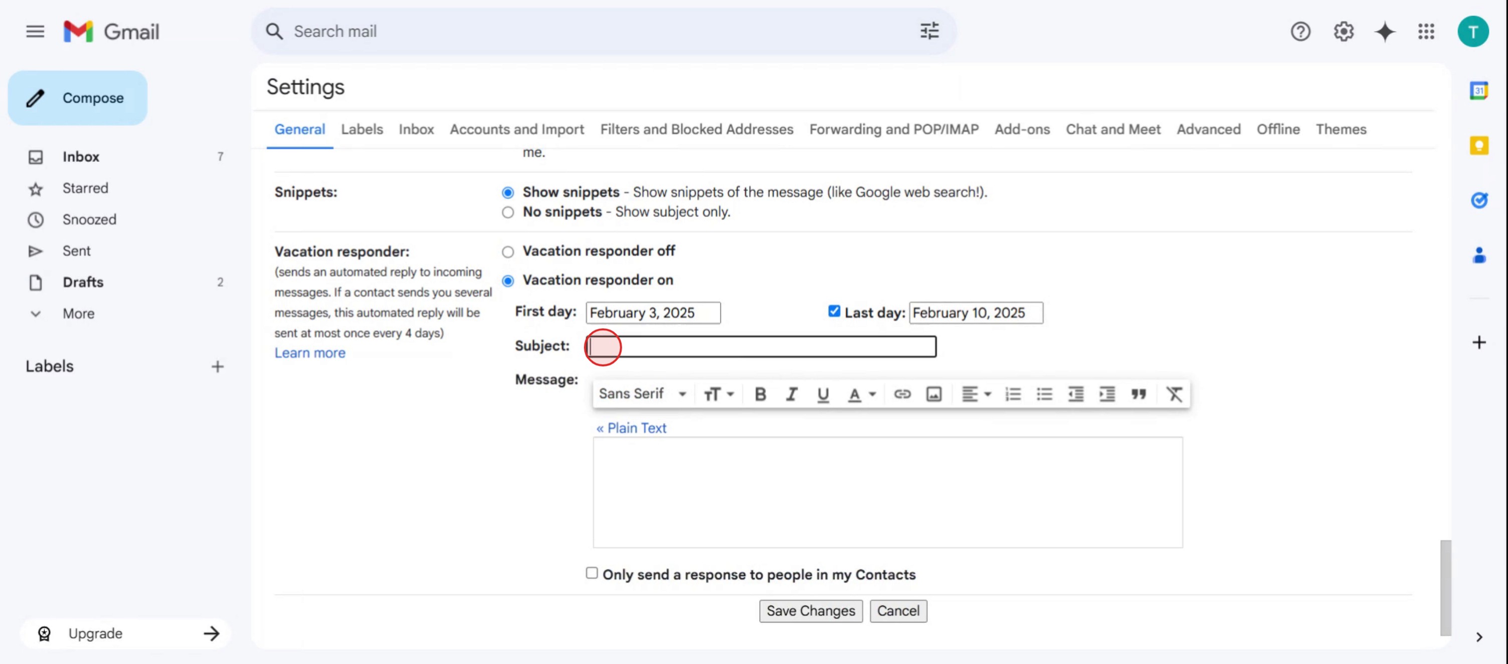 عيّن تواريخ محددة – جدولة تاريخي البدء والانتهاء لردودك التلقائية لتجنب إرسال رسائل خارج المكتب عندما تعود.