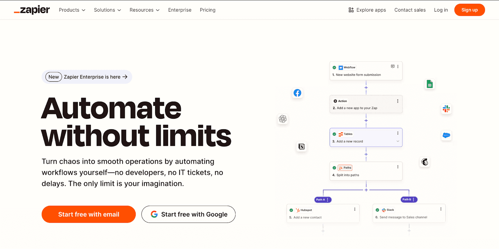 Zapier is a workflow automation platform that connects your favorite apps and services, helping you streamline processes without needing to write a single line of code. It’s perfect for businesses looking to save time, reduce manual work, and optimize efficiency.