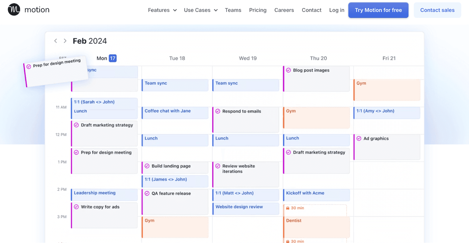Motion even supports multi-calendar integration, video conferencing, and payment acceptance, making it a versatile tool for both personal and professional use.