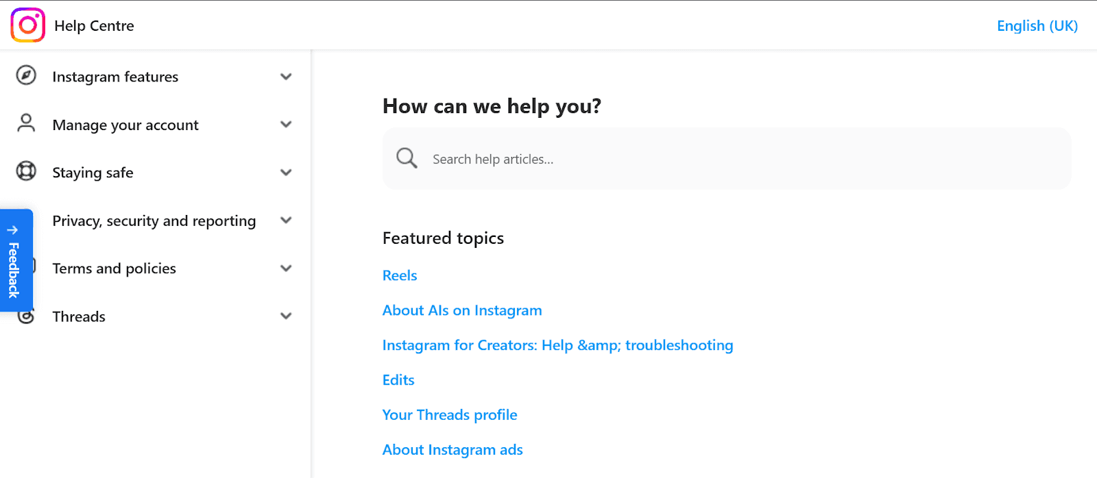 Instagram has a simple yet purposeful knowledge base setup. The design highlights the most relevant content upfront, so you don’t waste time hunting through categories or scrolling endlessly.