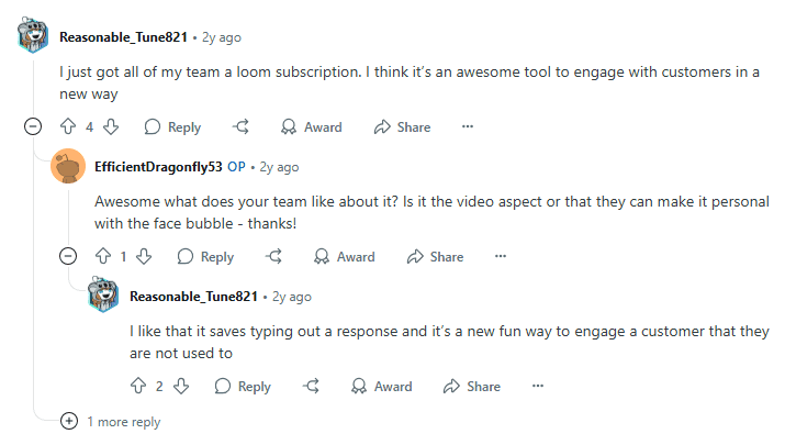 Loom enjoys a strong 4.7 rating on G2. Read what Reddit users have to say -