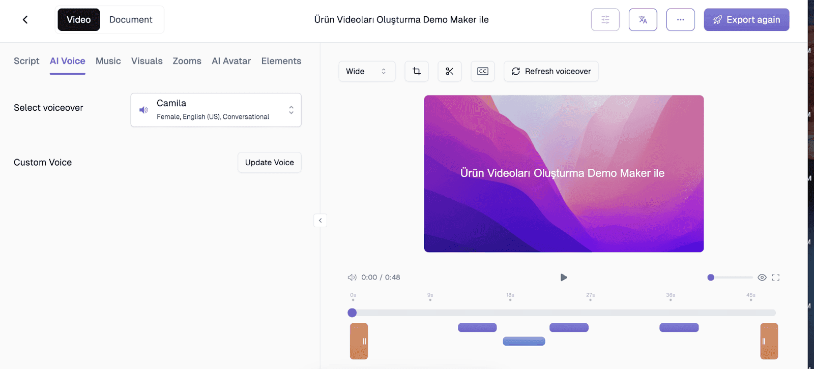To match the tone and context of your SOP, you can choose from Trupeer’s AI voices, whether you want a male or female narrator, as well as regional accents.