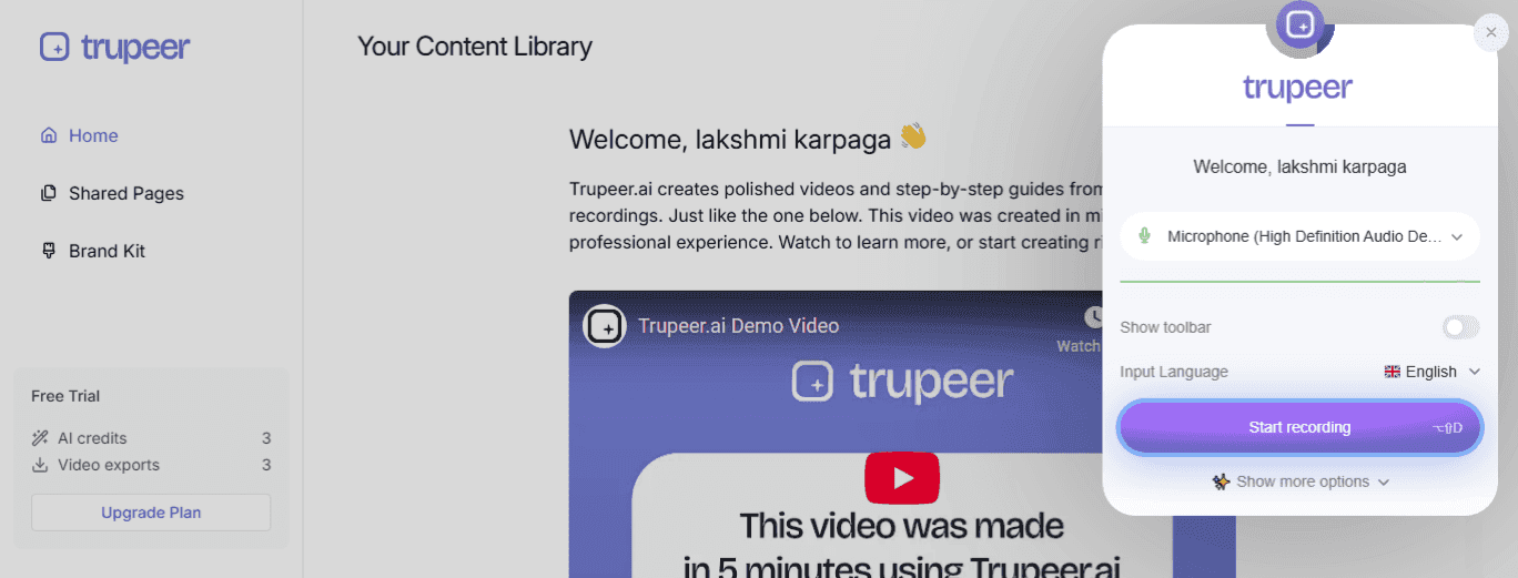 The recording will automatically get uploaded to your Trupeer dashboard for processing