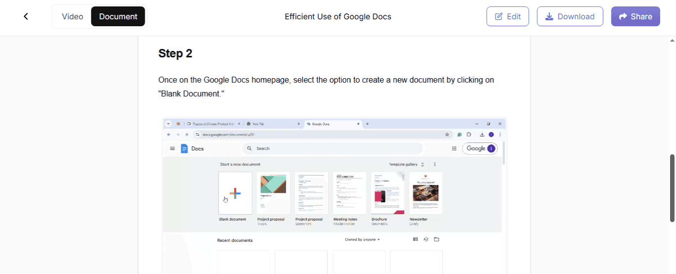 After generating the product demo video, you can extract the key steps and turn them into a written guide or a visual walkthrough, shareable with your users/team