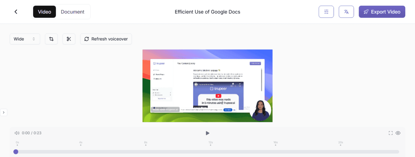 Going a step forward, Trupeer.ai (in partnership with Heygen) lets you create AI-powered product demo videos using avatars, making them more engaging and scalable.