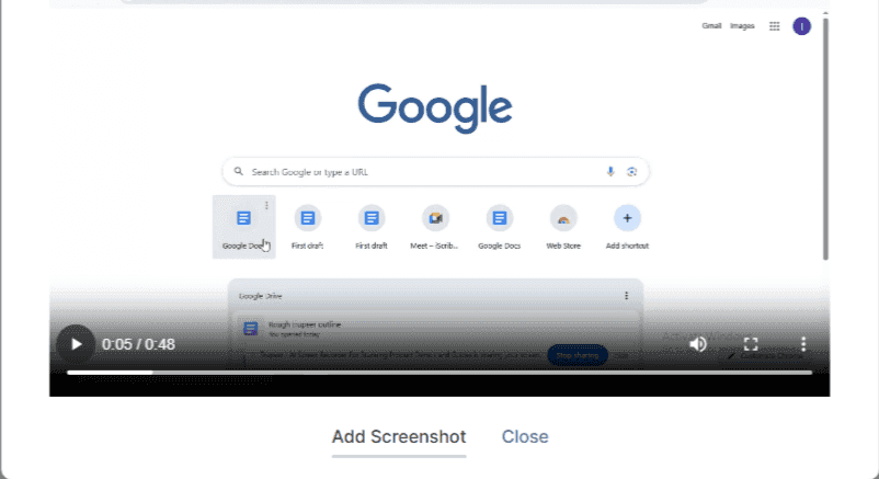 Trupeer automatically captures screenshots during the recording process, but you can replace any image from the video with a more relevant or updated one. Play the video and click Add screenshot when you want to replace one and it would be done in a minute
