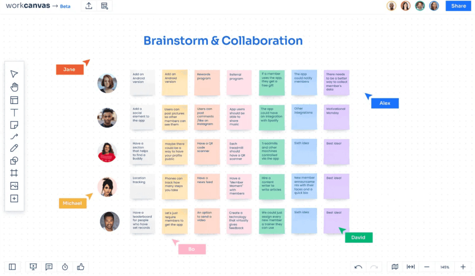 • Allows you to instantly collaborate on every canvas, no matter where you are in the world