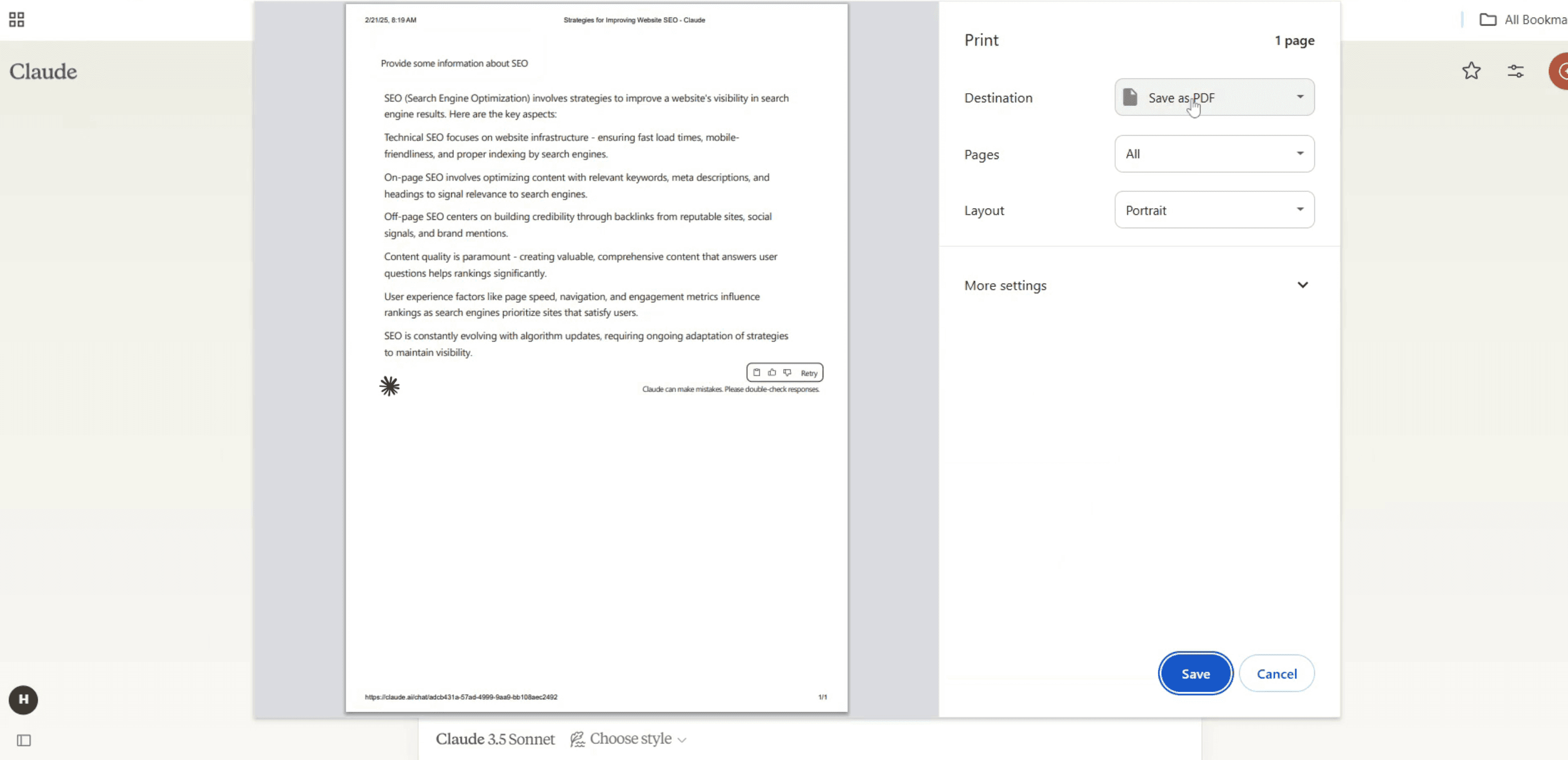 检查 Claude AI 设置,看看是否有用于导出或复制对话的内置共享选项。