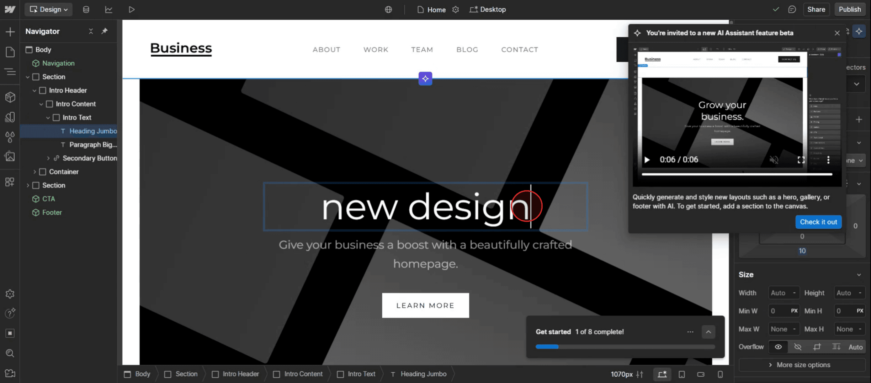 不检查移动端兼容性——有些模板在桌面端看起来很棒,但在移动端会出现问题。请在 Web flow 的响应式编辑器中测试并微调设计。