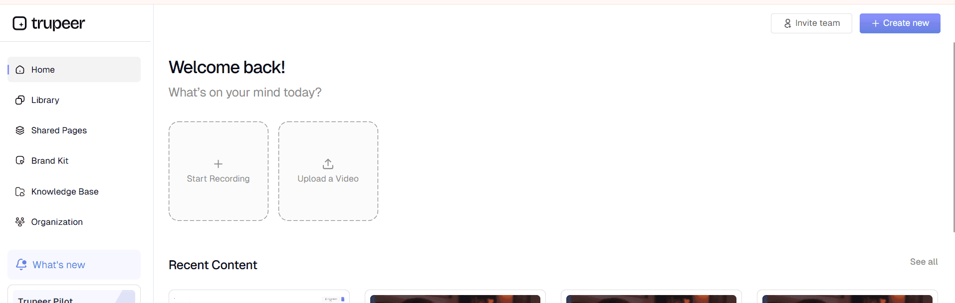 Beginnen Sie damit, Ihren Bildschirm direkt über Trupeers integrierten Rekorder aufzunehmen oder eine vorhandene Aufnahme hochzuladen. Die Plattform unterstützt verschiedene Dateiformate und kann sowohl neu erfasste Inhalte als auch archivierte Aufzeichnungen verarbeiten. Diese Flexibilität bedeutet, dass Sie alte Schulungsmaterialien verbessern oder aus Live-Demonstrationen neue Dokumentation erstellen können.