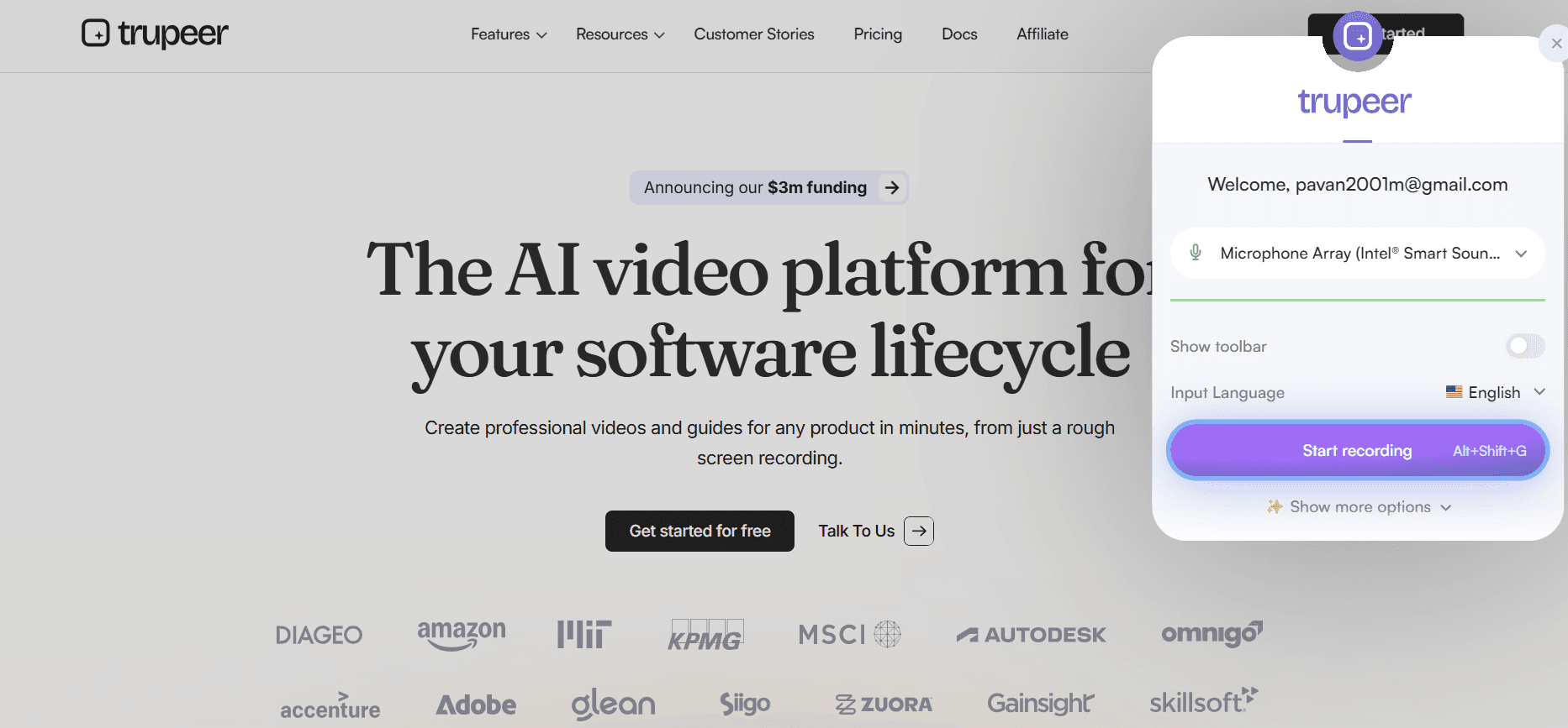 What sets Trupeer's approach apart from traditional documentation tools is the dual-output capability. While other platforms require you to create videos and documents separately, our AI screen recorder captures your process once and generates both formats simultaneously. This means your team gets video tutorials for visual learners and written procedures for reference, all from a single recording session.
