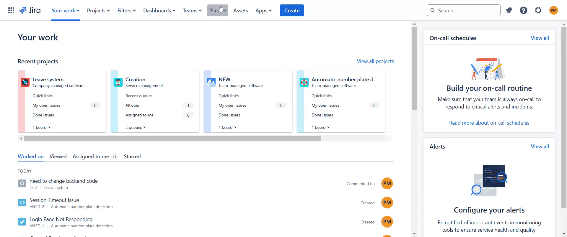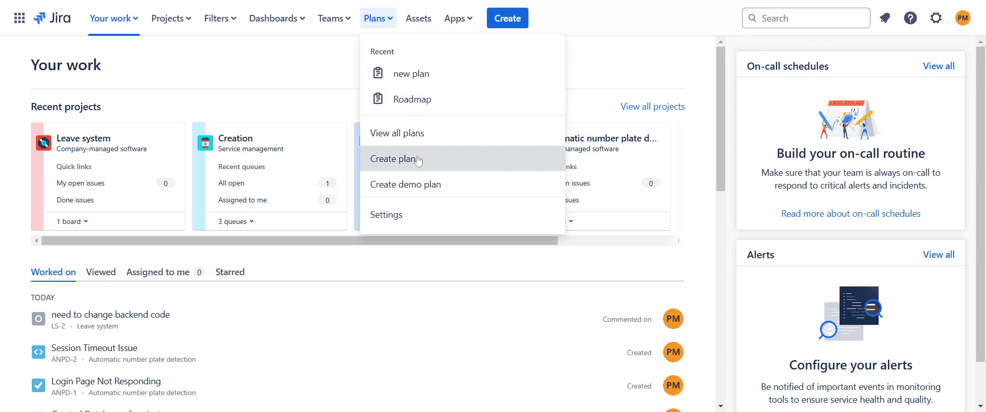 Um zu beginnen, gehen Sie in Jira zum Bereich "Plans" und klicken Sie auf "Plans".
