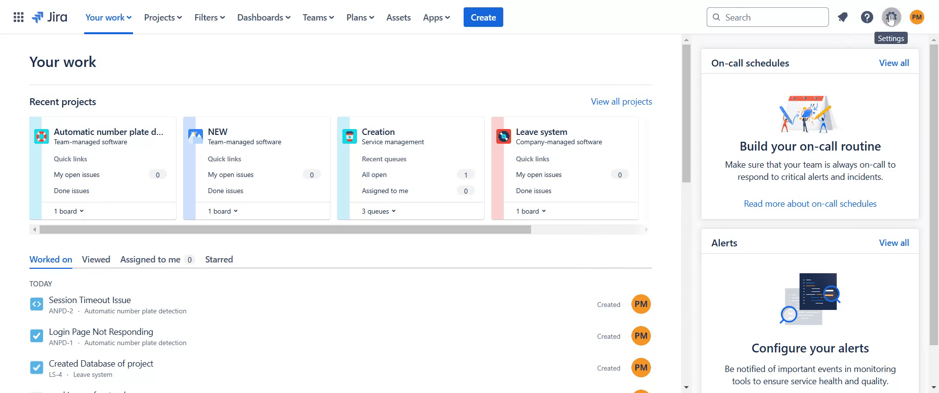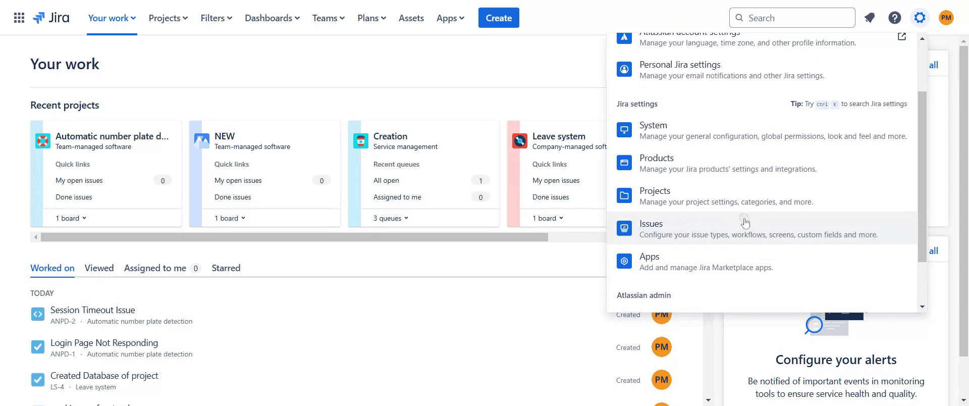 Beginnen Sie damit, in Jira zur Option "Einstellungen" zu navigieren. Klicken Sie darauf.