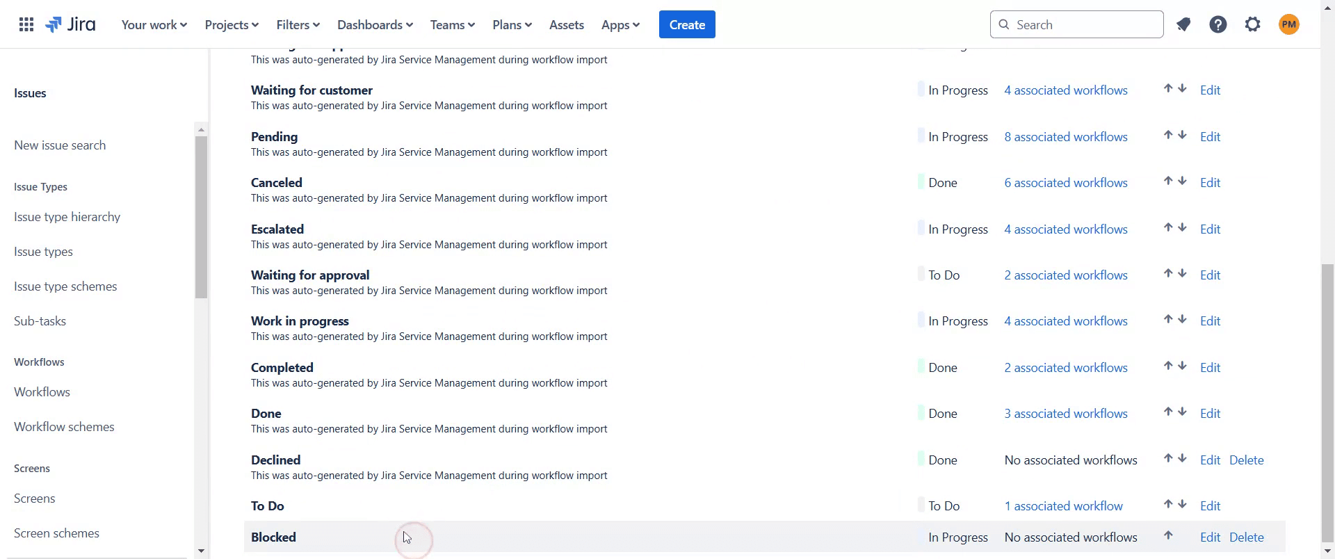Navigieren Sie zu den Jira-Einstellungen, gehen Sie zu den Workflows und erstellen Sie einen neuen Status namens Blocked, um hängen gebliebene Aufgaben zu verfolgen.
