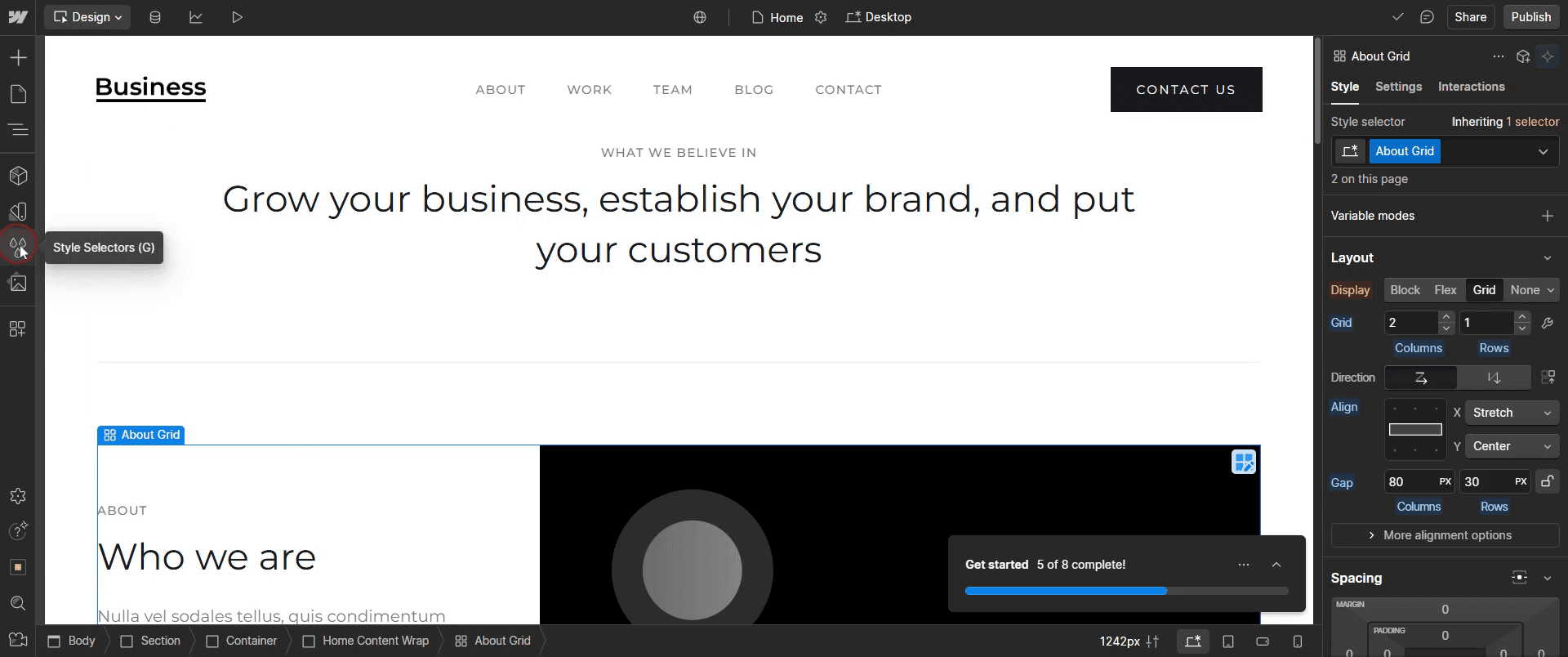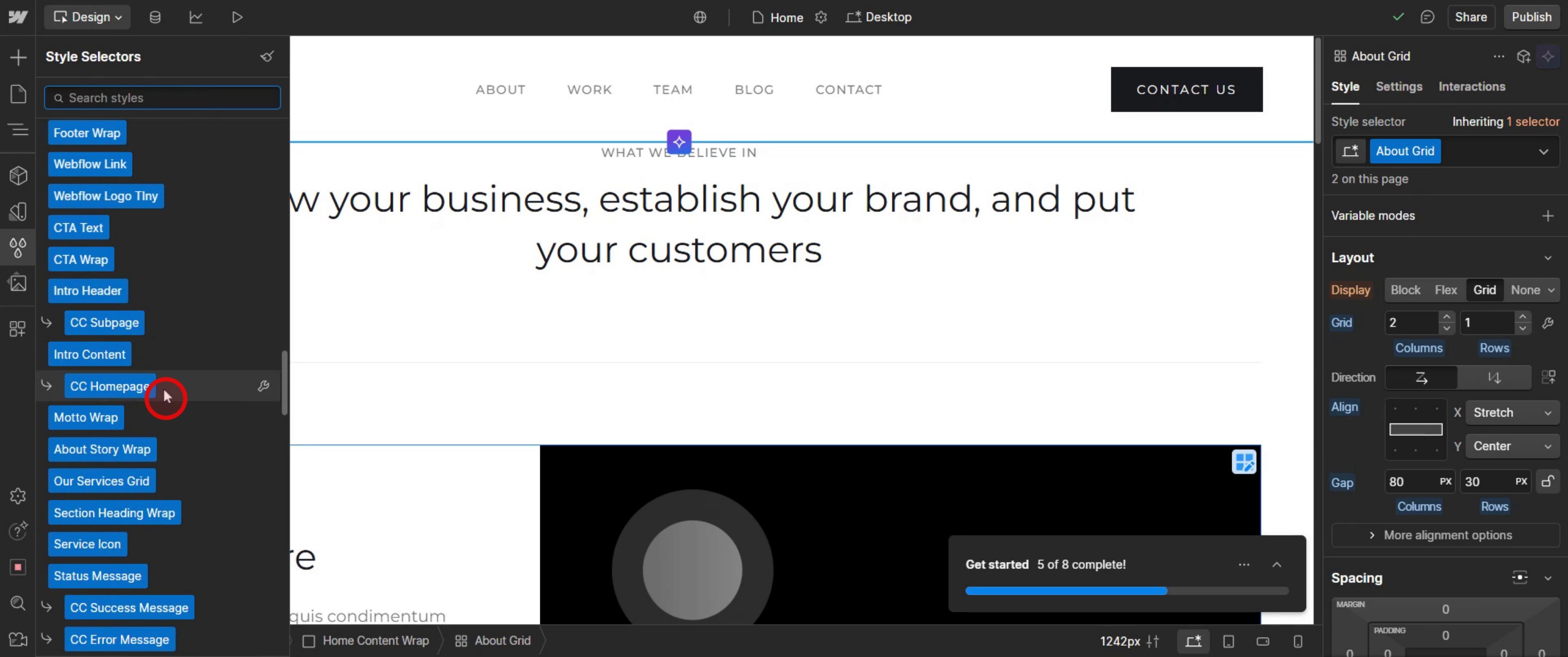 Verstehen, was eine Klasse ist – In Webflow ist eine Klasse eine wiederverwendbare Stildefinition, die auf Elemente wie Text, Schaltflächen und Container angewendet wird. Das Löschen einer Klasse entfernt sie aus dem Style Manager, löscht jedoch nicht die Elemente selbst.