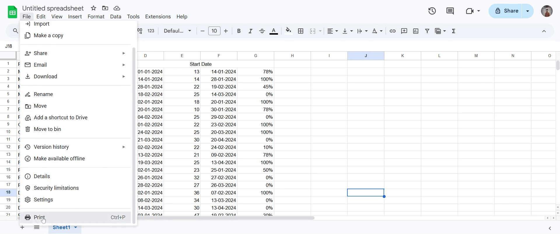 Wenn Sie annehmen, dass Google Sheets direkte Randeinstellungen wie Docs oder Word hat: In Sheets werden Ränder über die Druckeinstellungen gesteuert, nicht in der Hauptbearbeitungsoberfläche.
