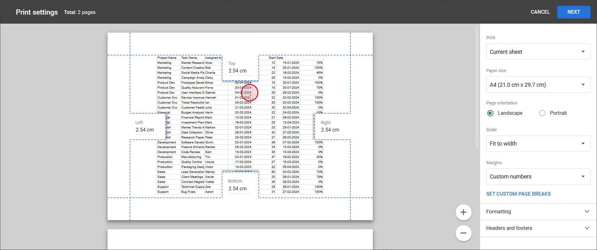 Nein, Ränder gelten beim Drucken für das gesamte Tabellenblatt. Wenn Sie unterschiedliche Ränder für verschiedene Bereiche benötigen, sollten Sie die Spaltenbreiten und Abstände manuell anpassen.Wie stelle ich sicher, dass meine Tabelle mit den richtigen Rändern korrekt gedruckt wird?