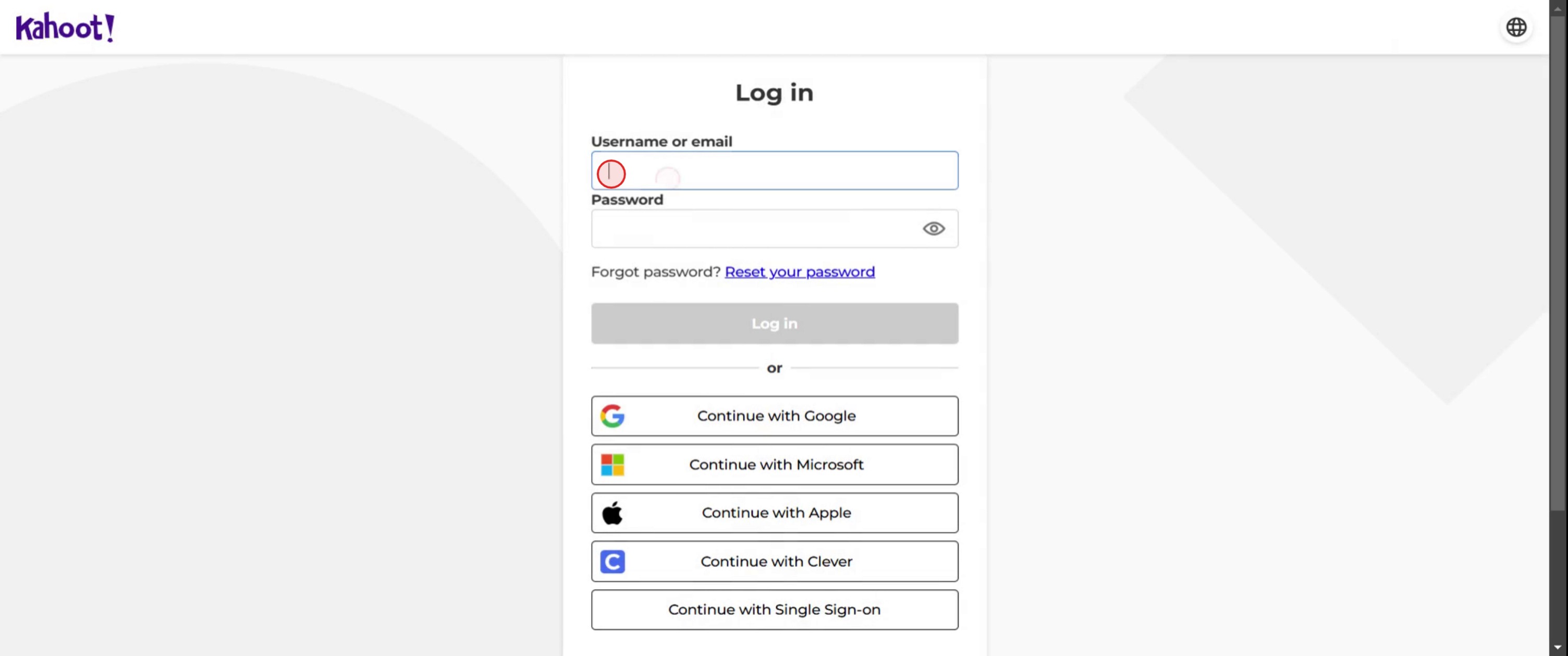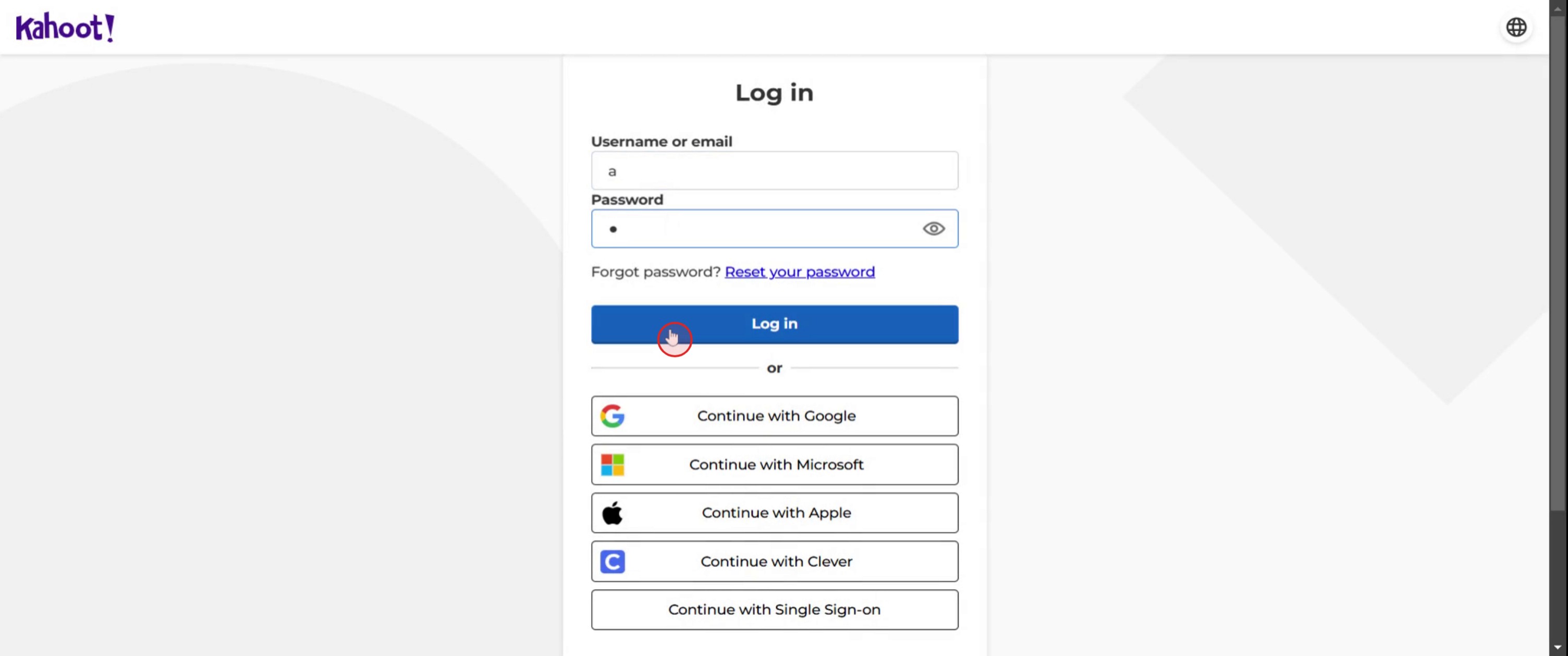 Klicken Sie auf der Anmeldeseite auf den Link Passwort vergessen? und folgen Sie den Anweisungen, um Ihr Passwort per E-Mail zurückzusetzen.Kann ich mich mit meinem Google- oder Microsoft-Konto bei Kahoot anmelden?