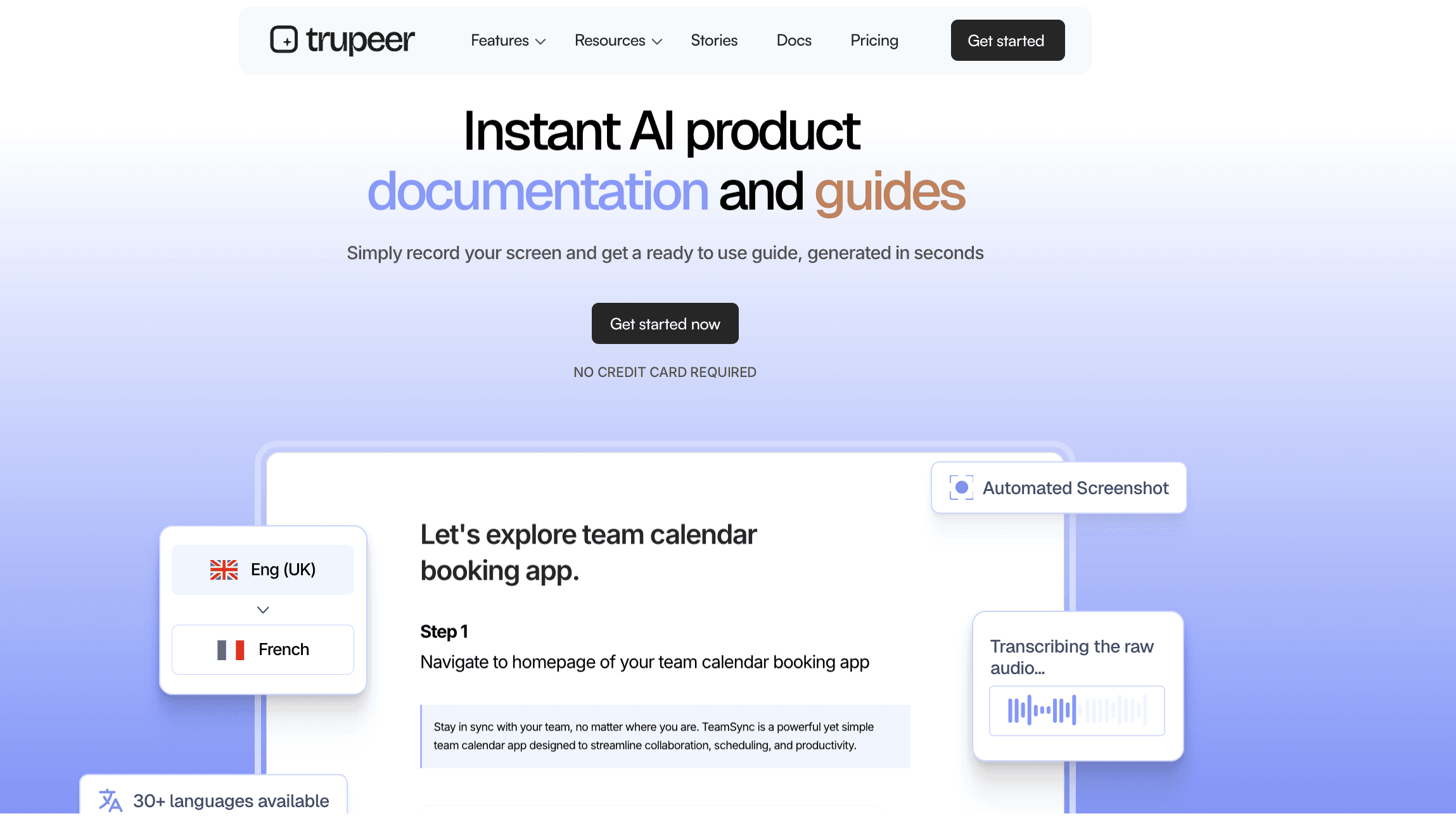 En lugar de tratar la documentación y el video como esfuerzos separados, Trupeer los une en un solo flujo de trabajo. Puedes crear videos y documentación de calidad profesional en minutos, personalizar el contenido para diferentes audiencias, mantener la coherencia de marca y actualizar todo sin volver a grabar. Lo que antes era una tarea interna que consumía mucho tiempo se convierte en un sistema escalable que da soporte tanto a equipos internos como a usuarios externos.