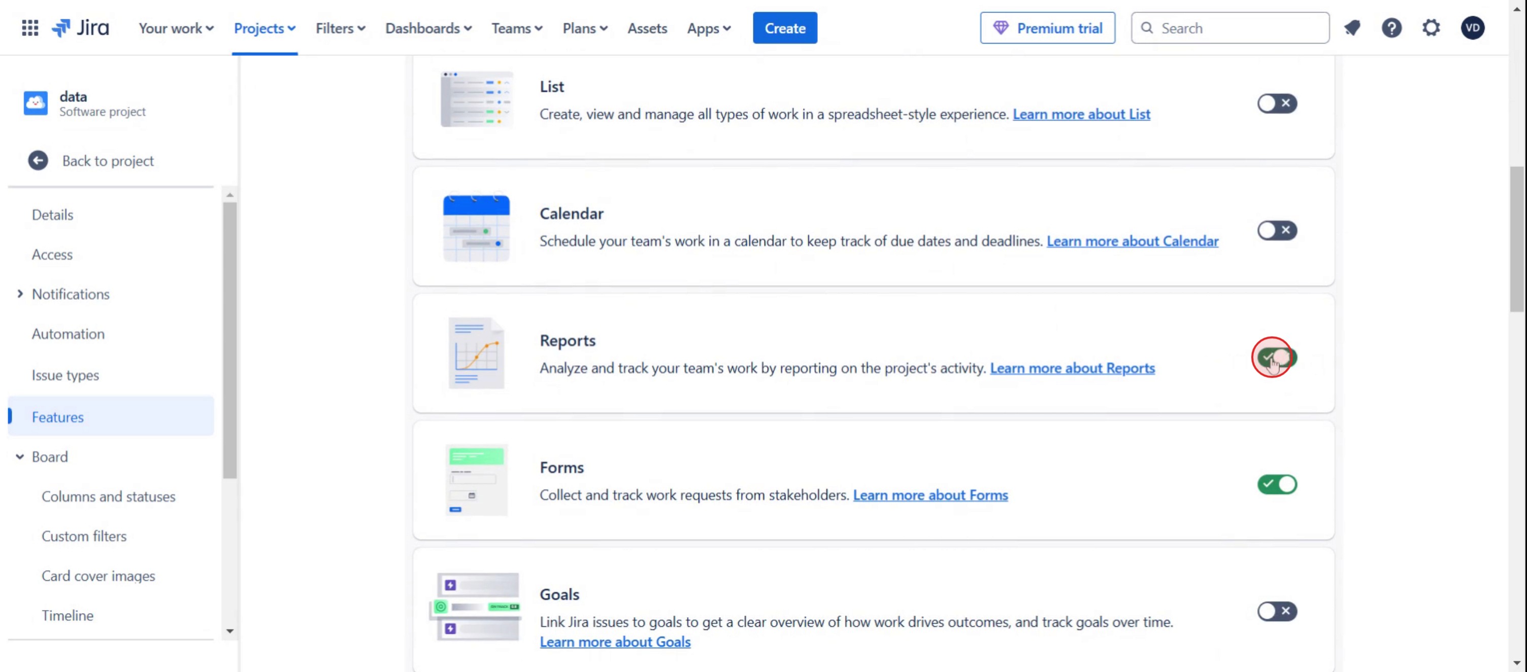 Habilita la Reports option,