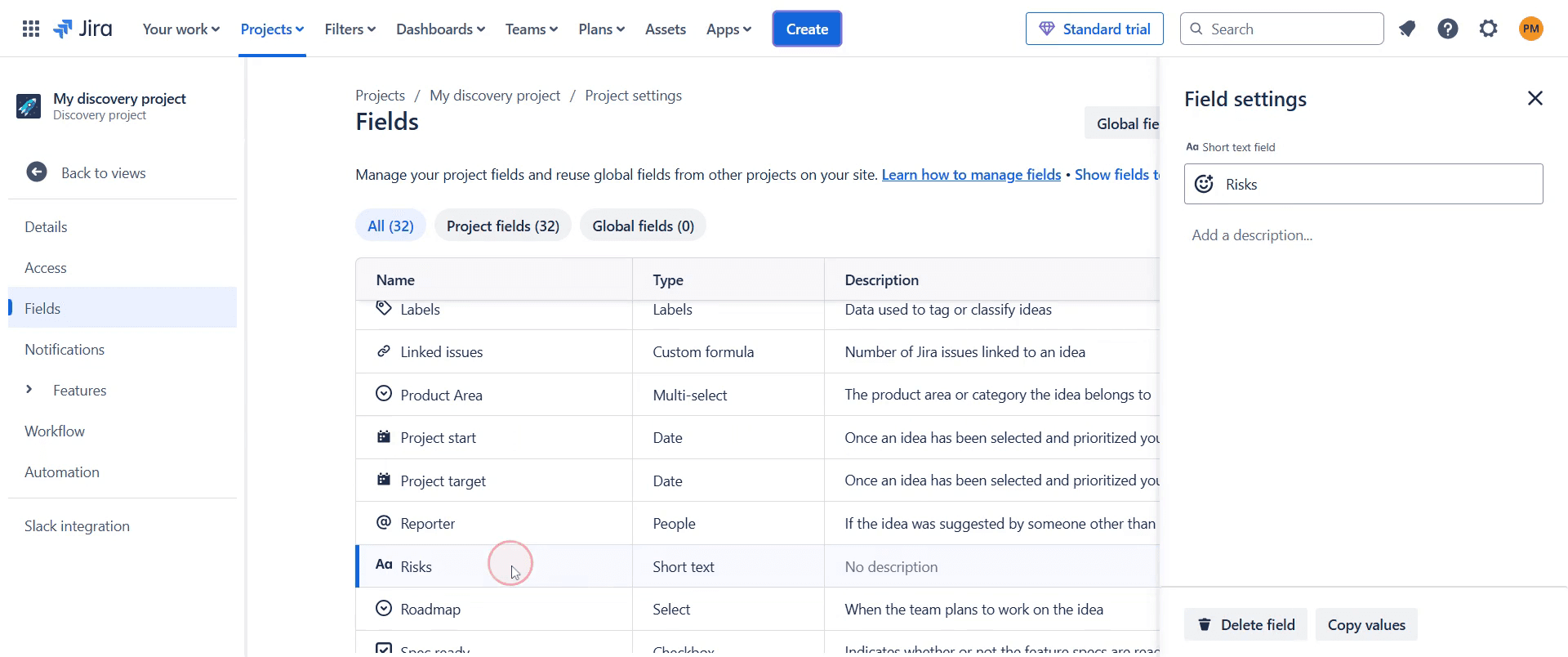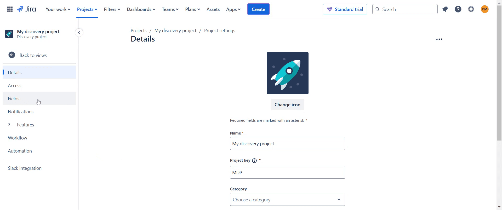 Ve al proyecto en Jira al que deseas añadir un campo.