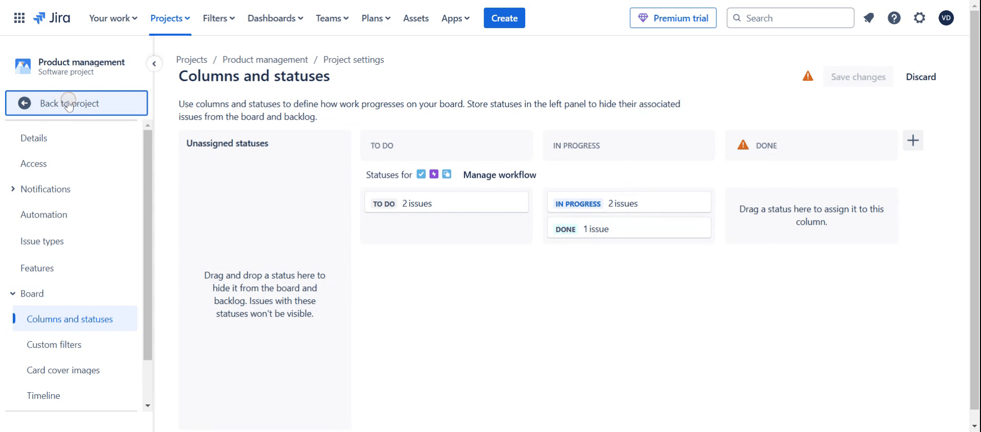 Sí, modificar los flujos de trabajo y las columnas del tablero normalmente requiere permisos de administrador de Jira o de administrador del proyecto.