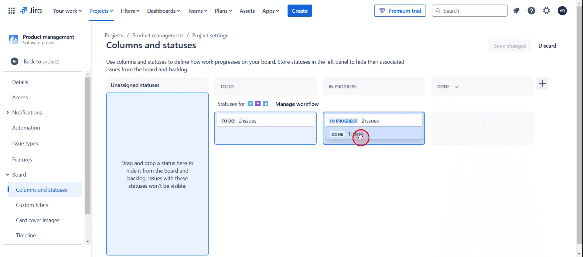 Cómo añadir un estado a una columna en Jira
