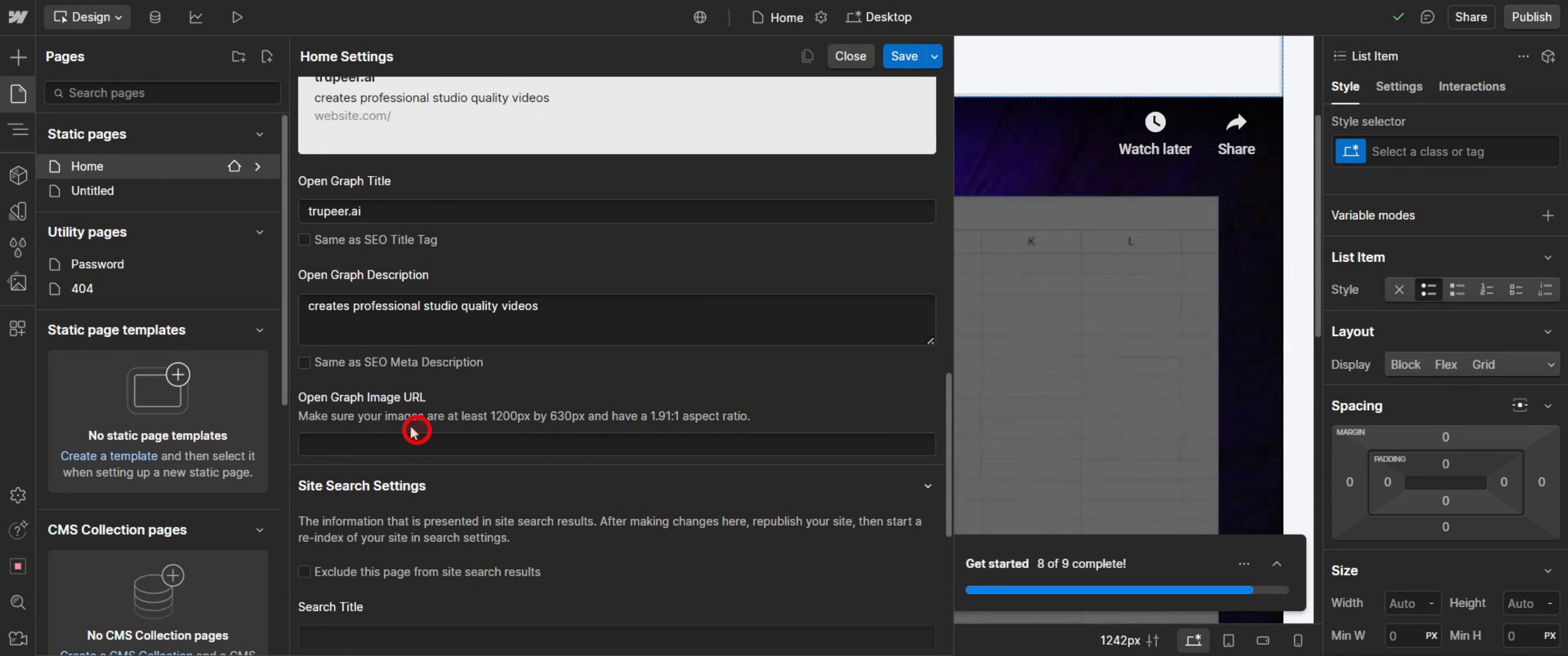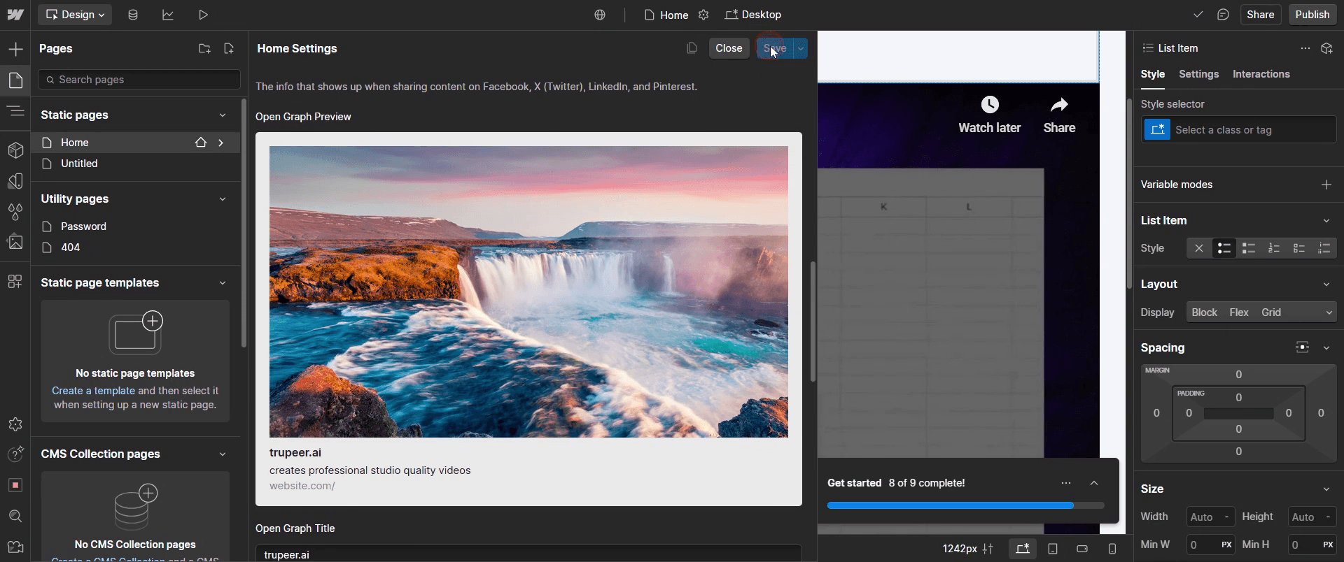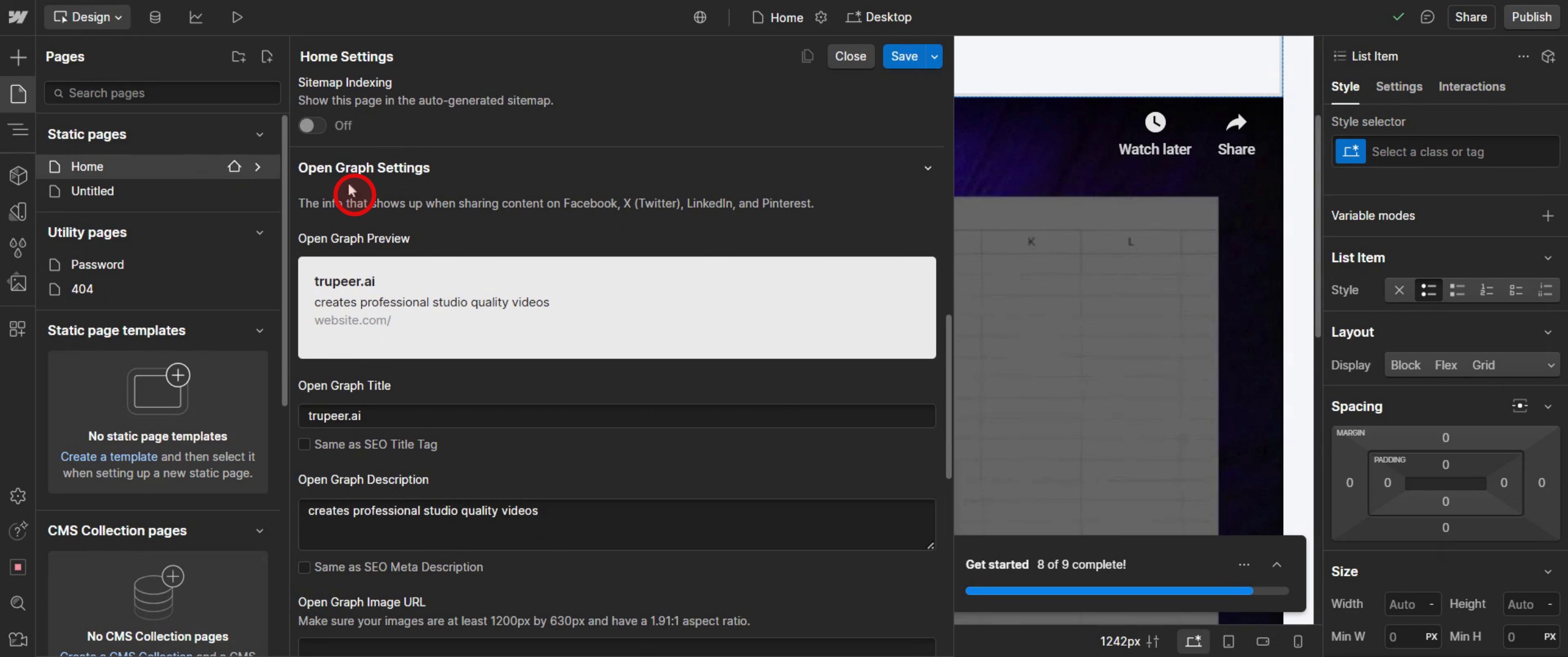 Este es el proceso paso a paso para cambiar la imagen de Open Graph en Web flow. Exploremos algunos consejos para ello.
