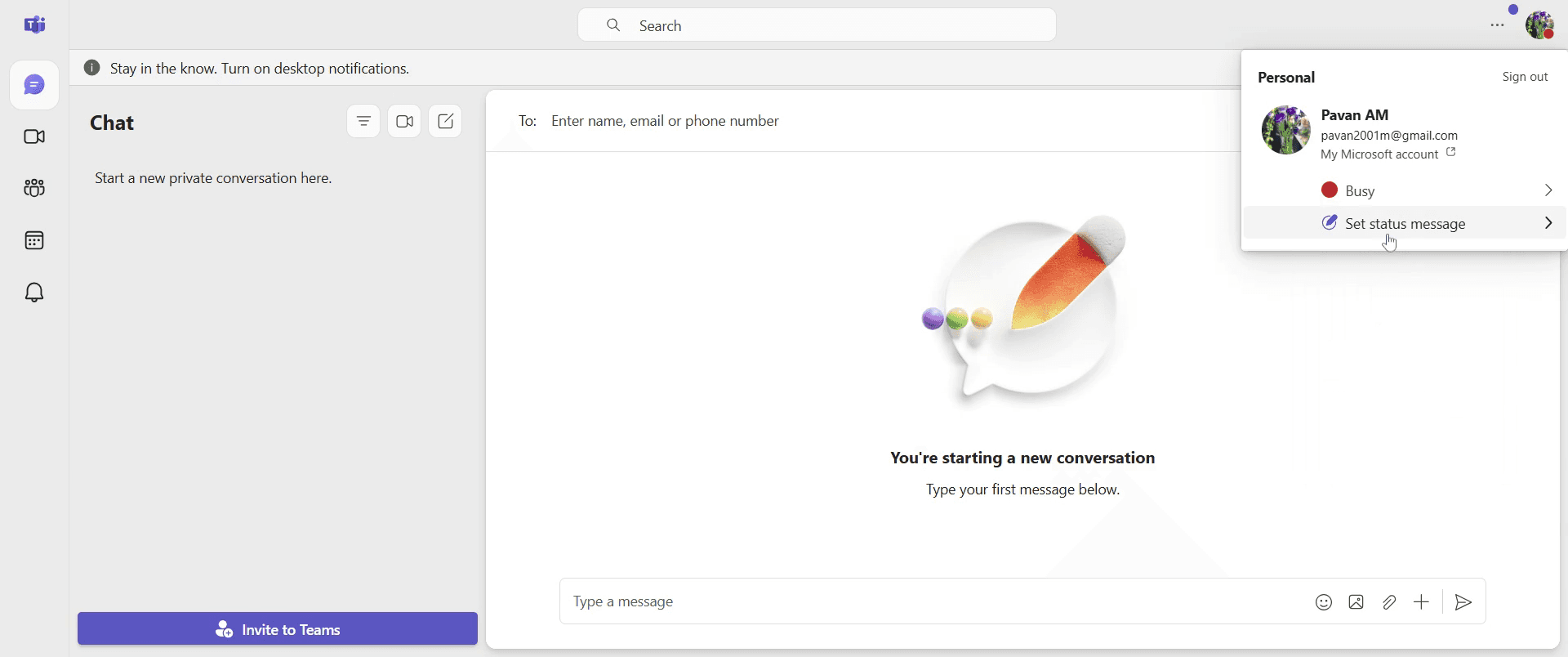 Ve a tu foto de perfil en Microsoft Teams y haz clic en ella.