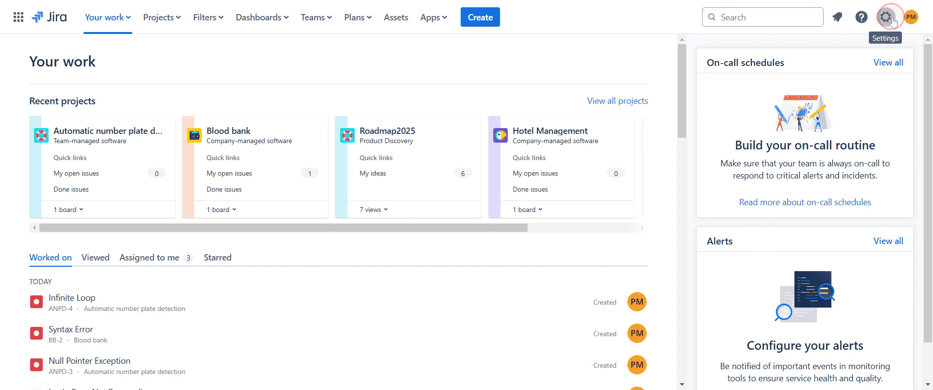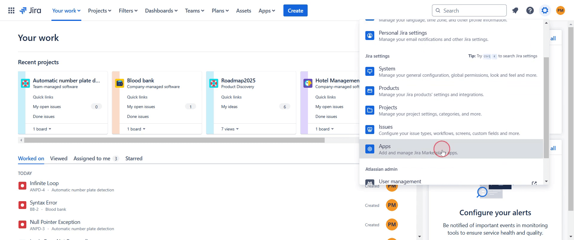 Vaya a la opción 'Configuración' en su cuenta de Jira y haga clic en ella.