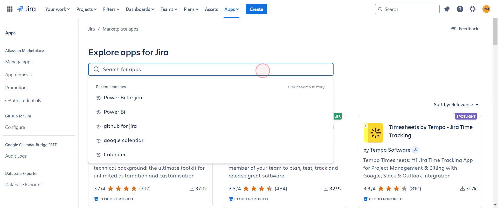 Utilice la barra de búsqueda para buscar "Power BI."
