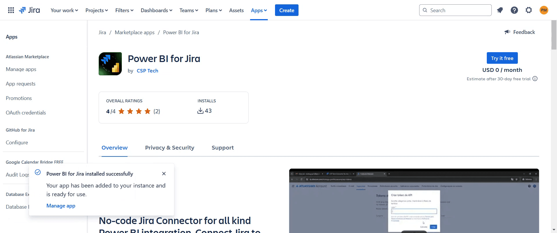 Utilice el conector Jira Power BI de Atlassian Marketplace para una integración fluida.