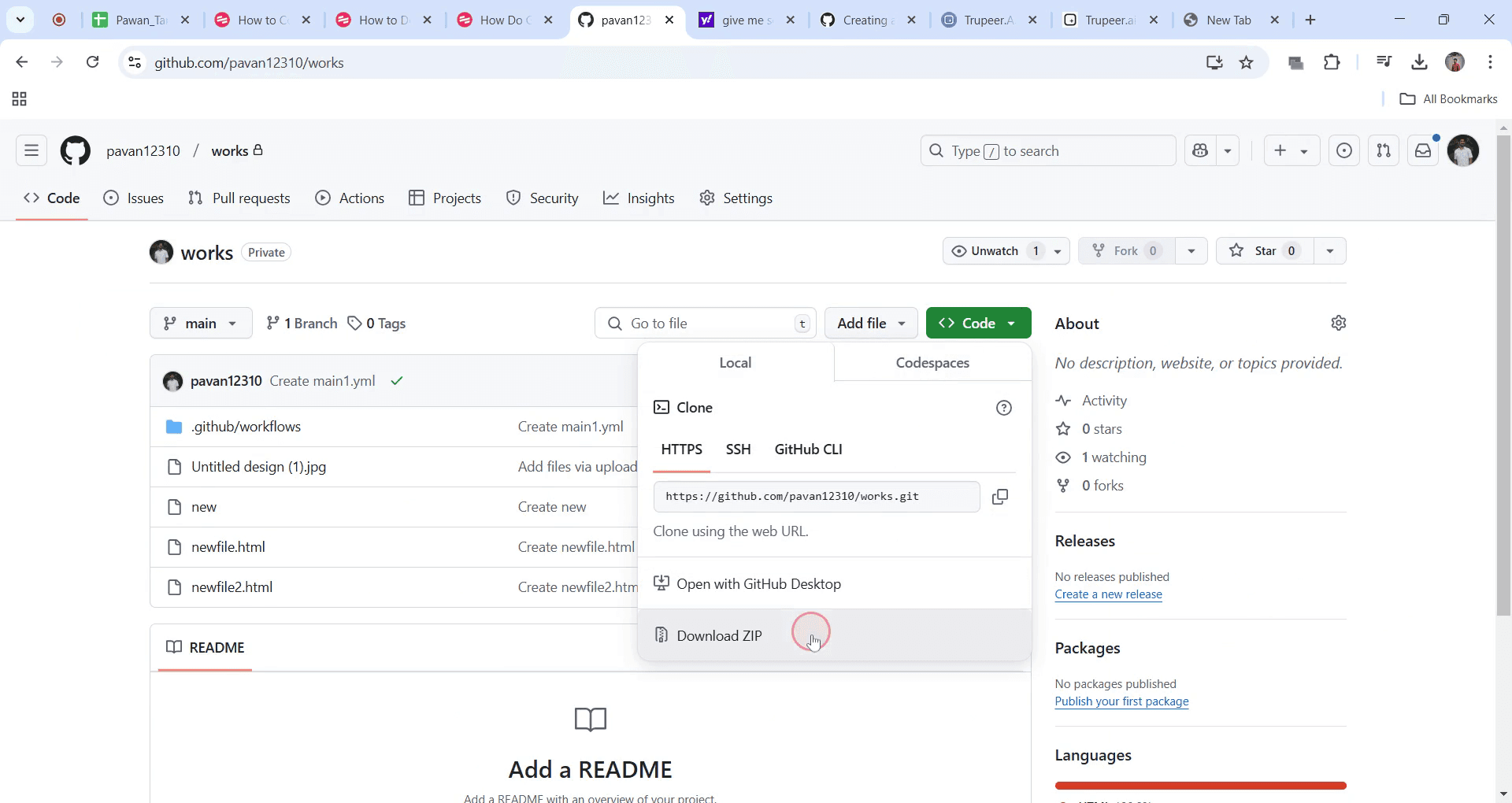 Haz clic en la opción 'Download ZIP'.