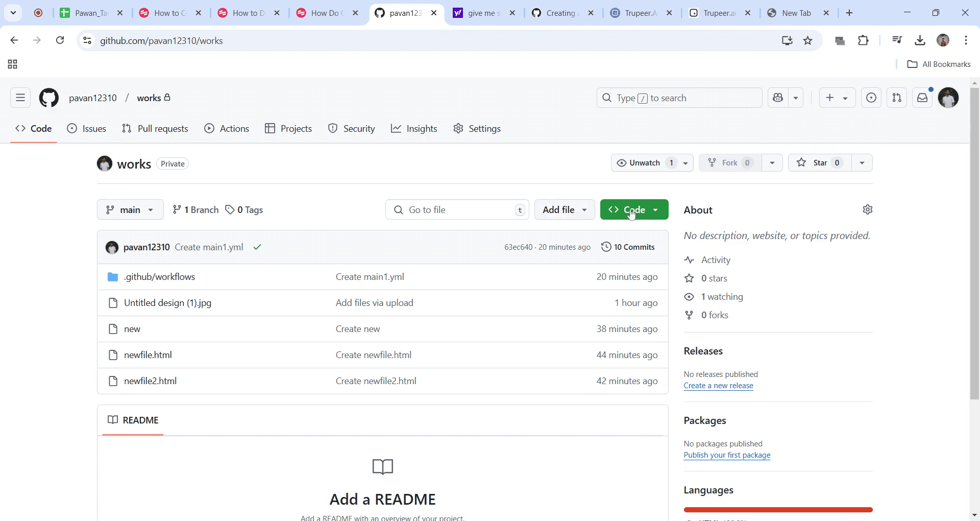 localiza el botón 'Code' y selecciónalo.