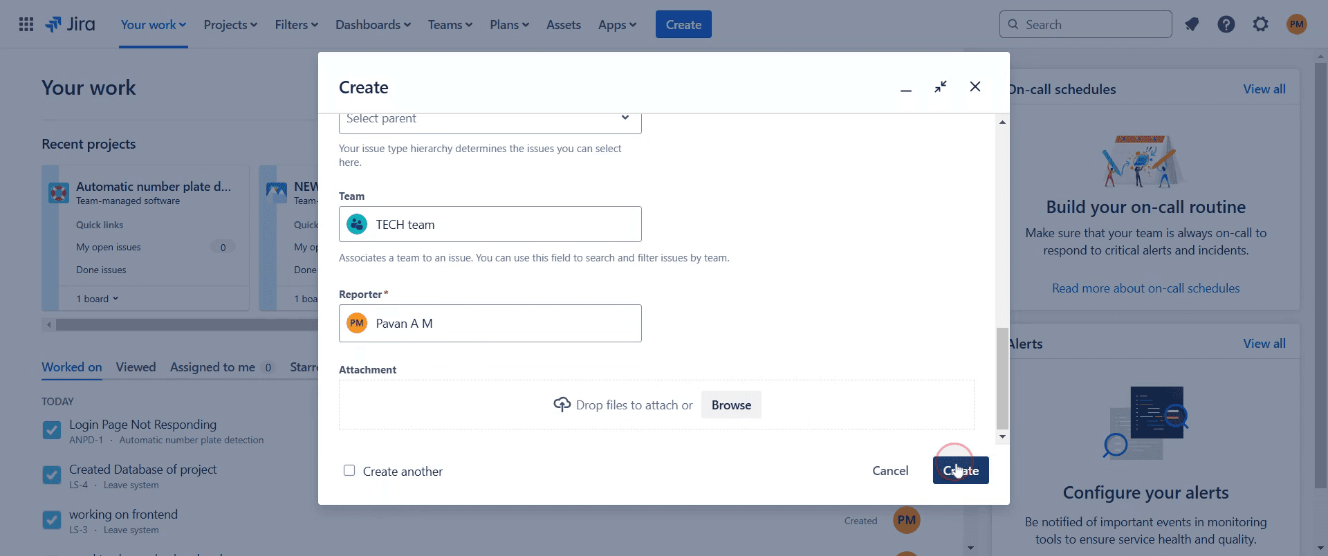 Para comenzar a crear un defecto en Jira, haz clic en la opción "Create".