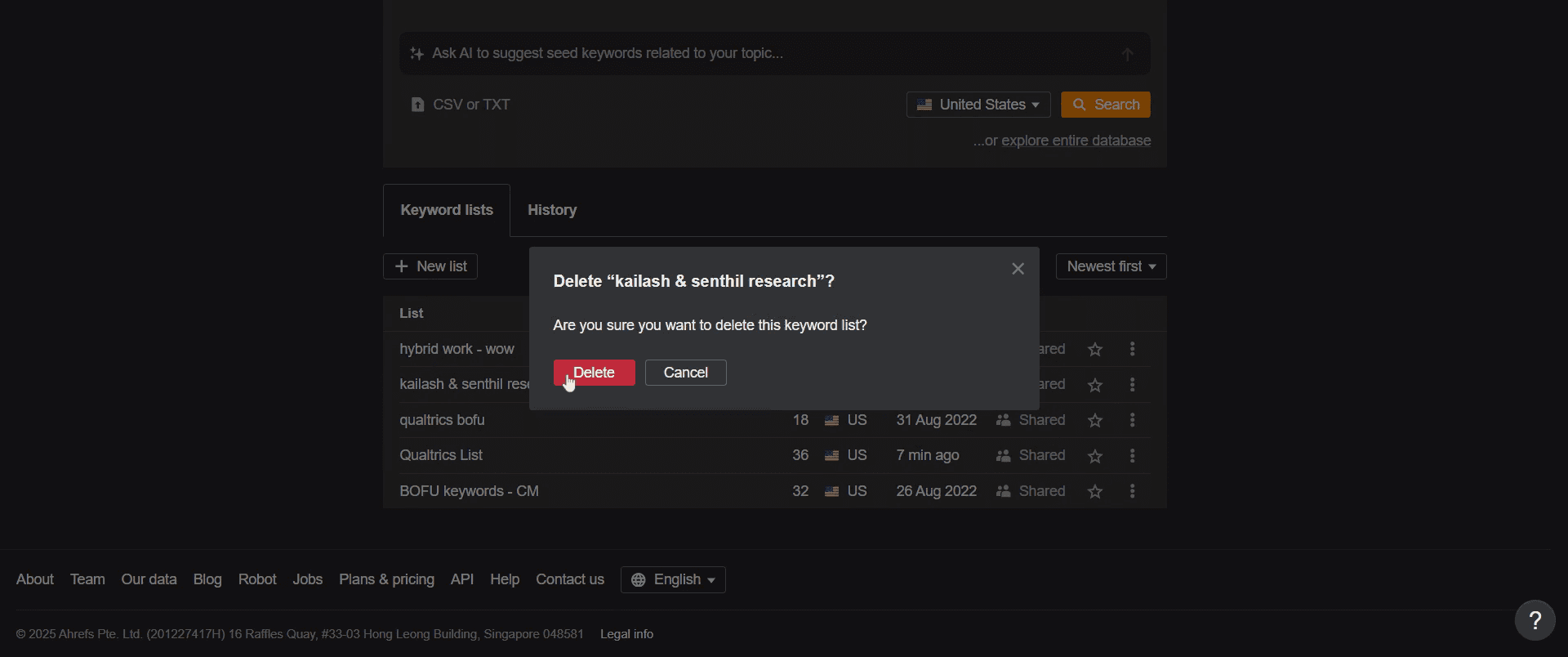 Suponer que las listas eliminadas se pueden recuperar – Ahrefs no ofrece una opción de deshacer.
