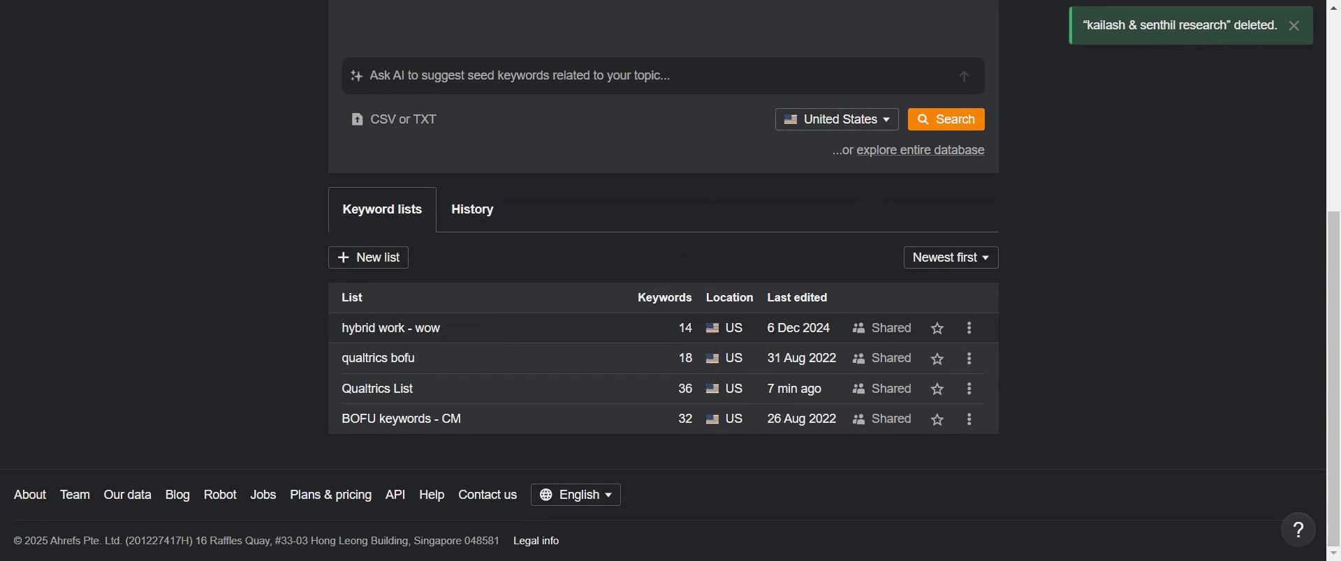 Eso es todo. Esta es una guía paso a paso sobre cómo eliminar una lista en Ahrefs.