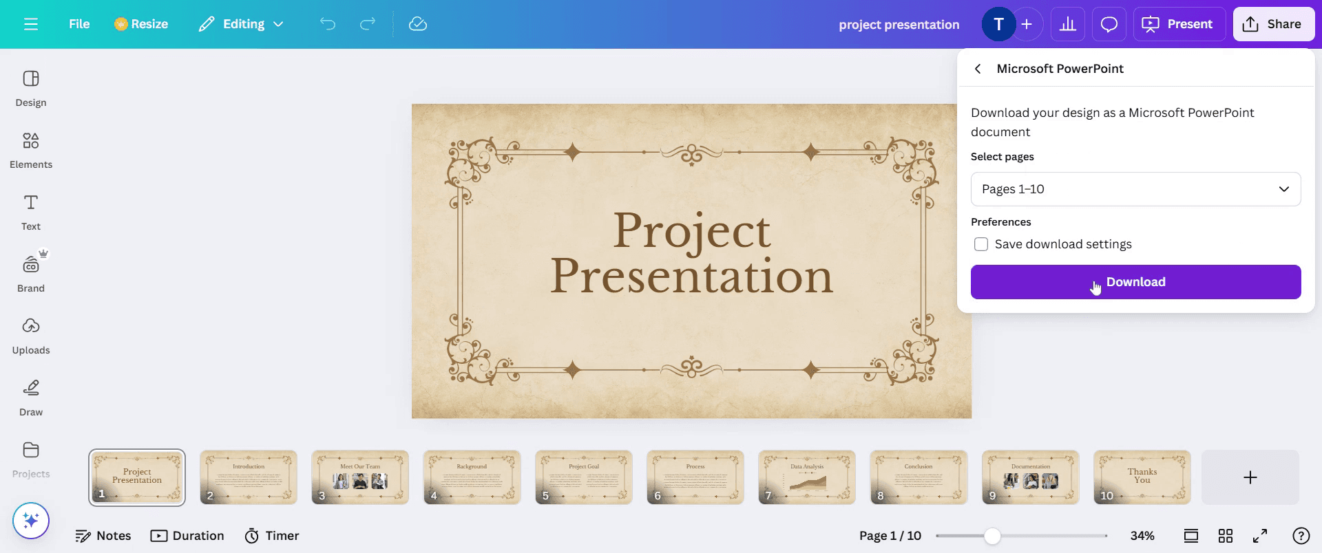 Cómo descargar Canva como PowerPoint