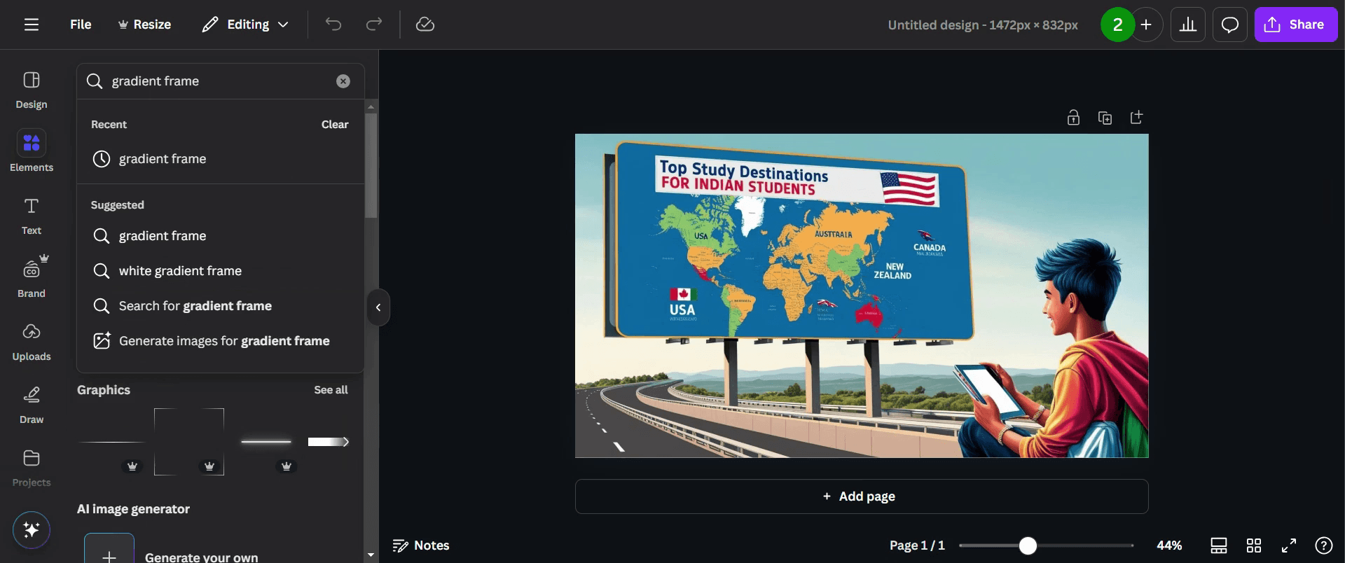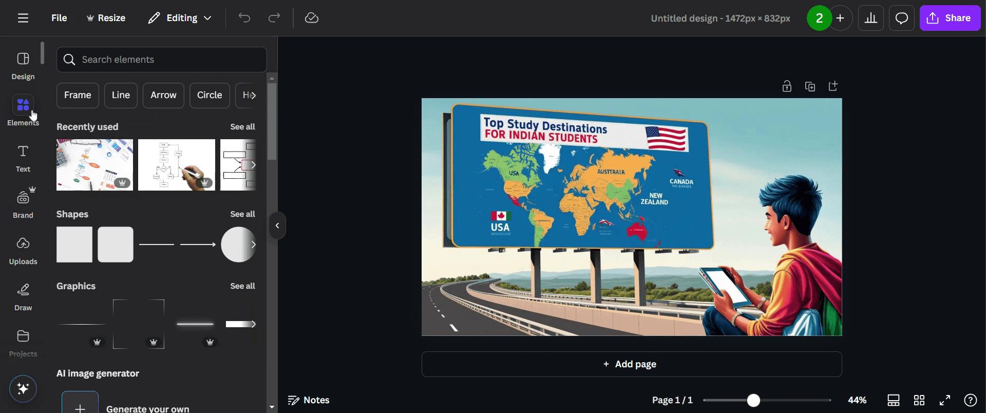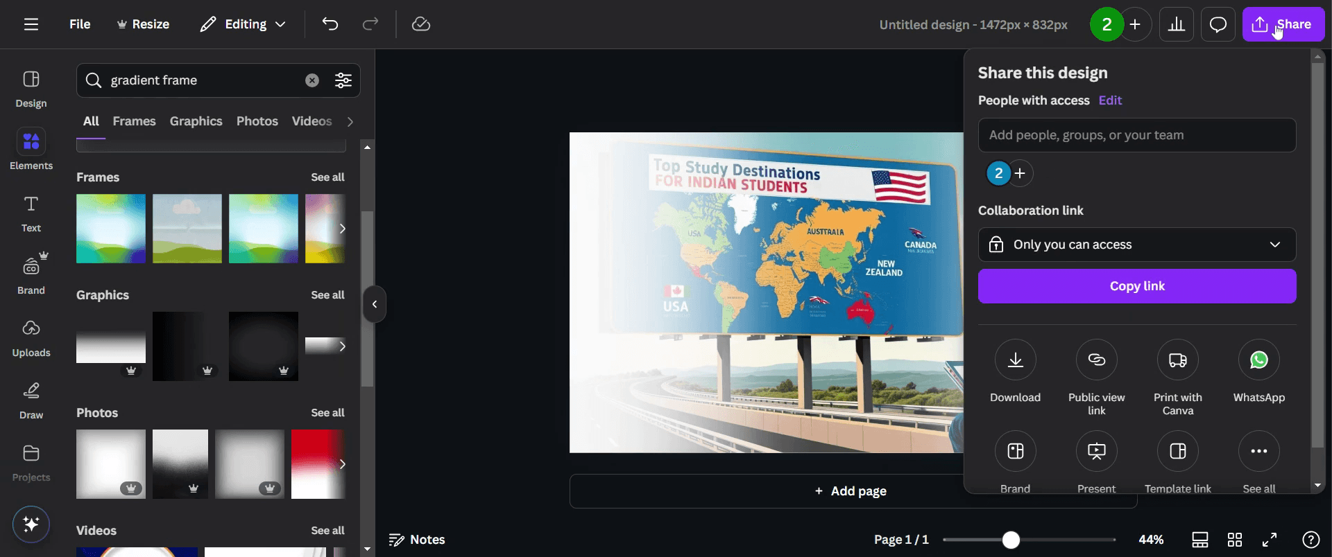 Por último, comparte tu diseño terminado haciendo clic en el botón "compartir".