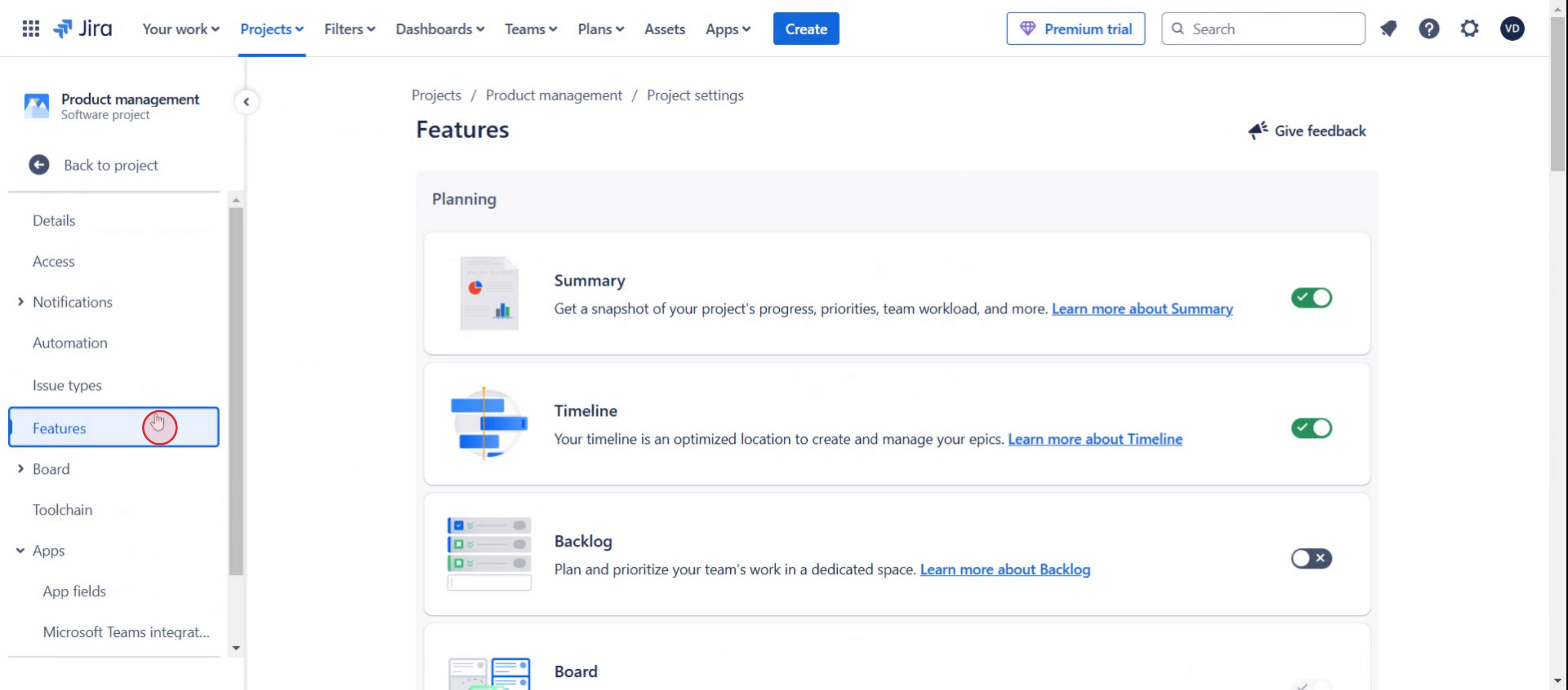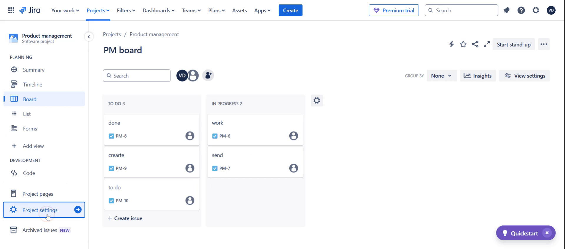 Haz clic en la Configuración del proyecto.