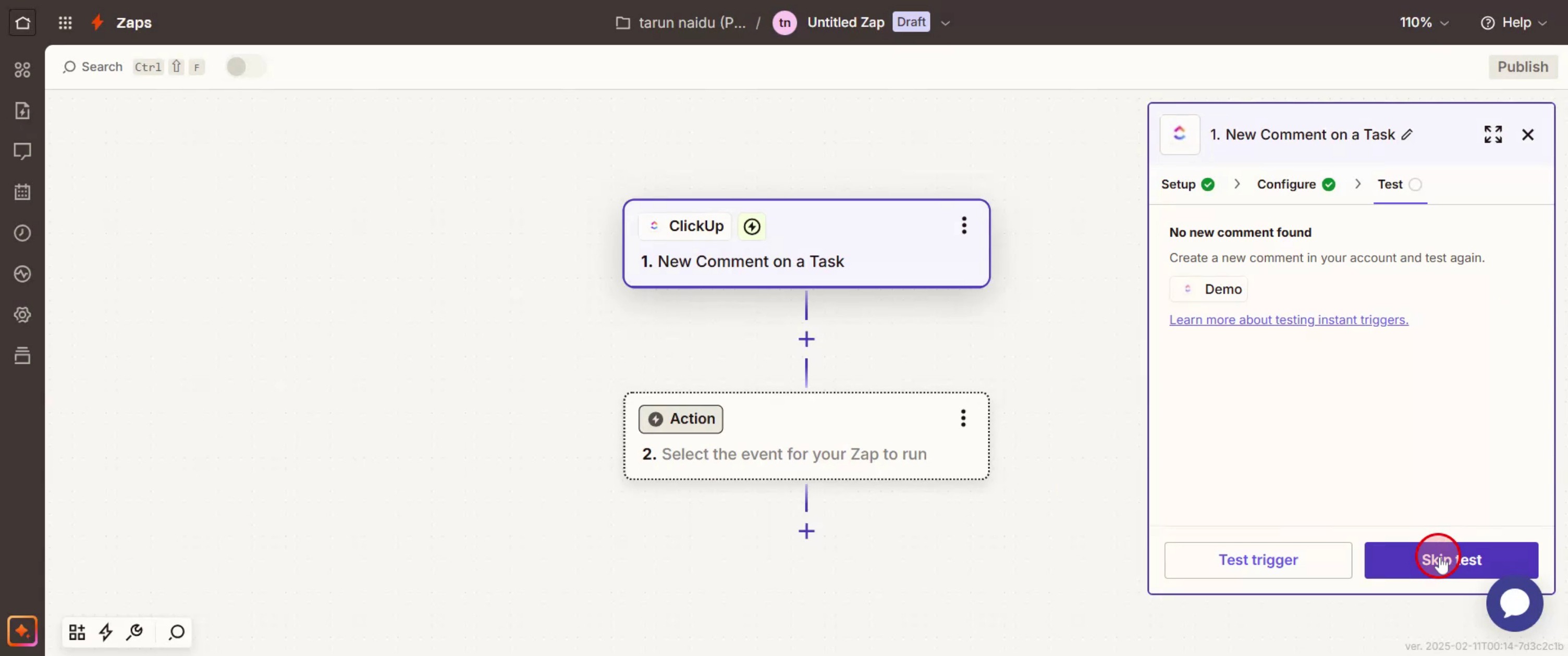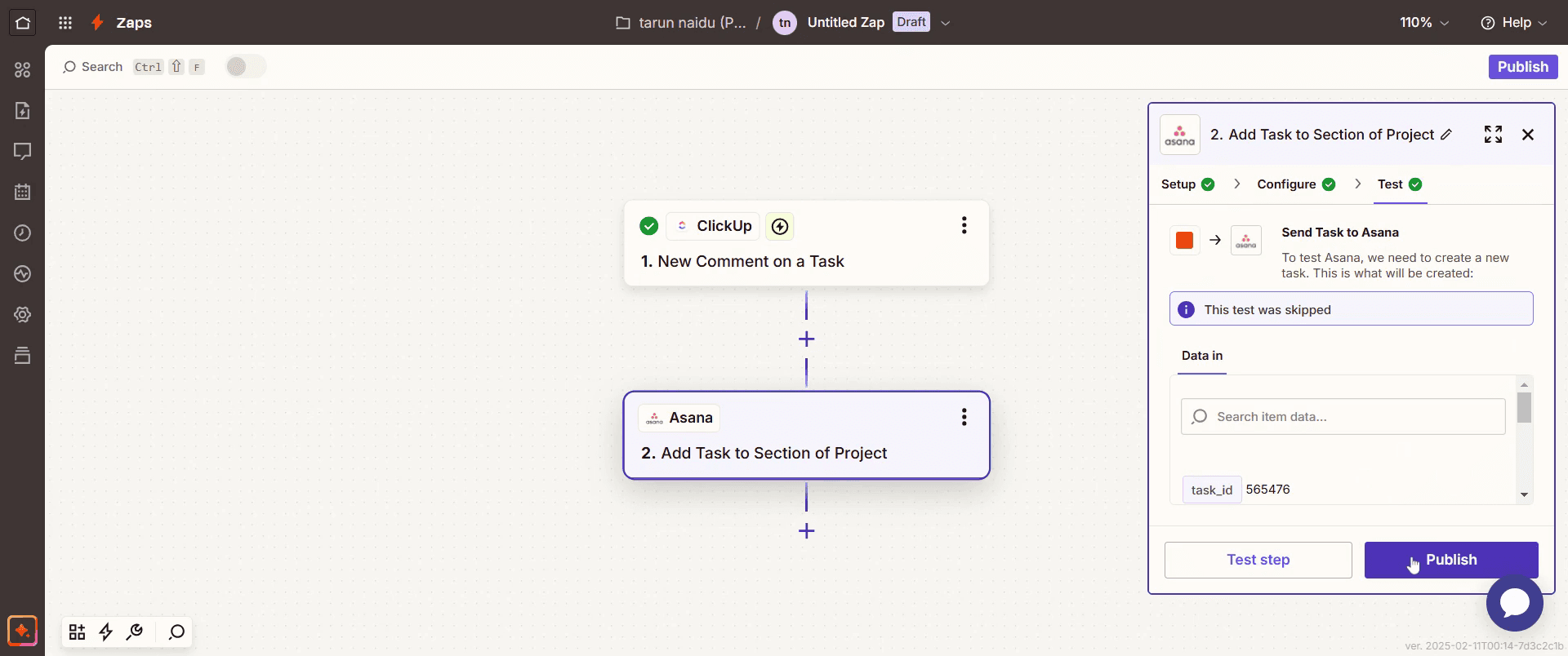 Continúe el proceso y haga clic en Probar paso.