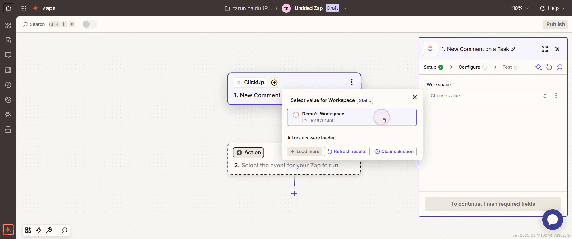 Luego seleccione el espacio de trabajo adecuado.
