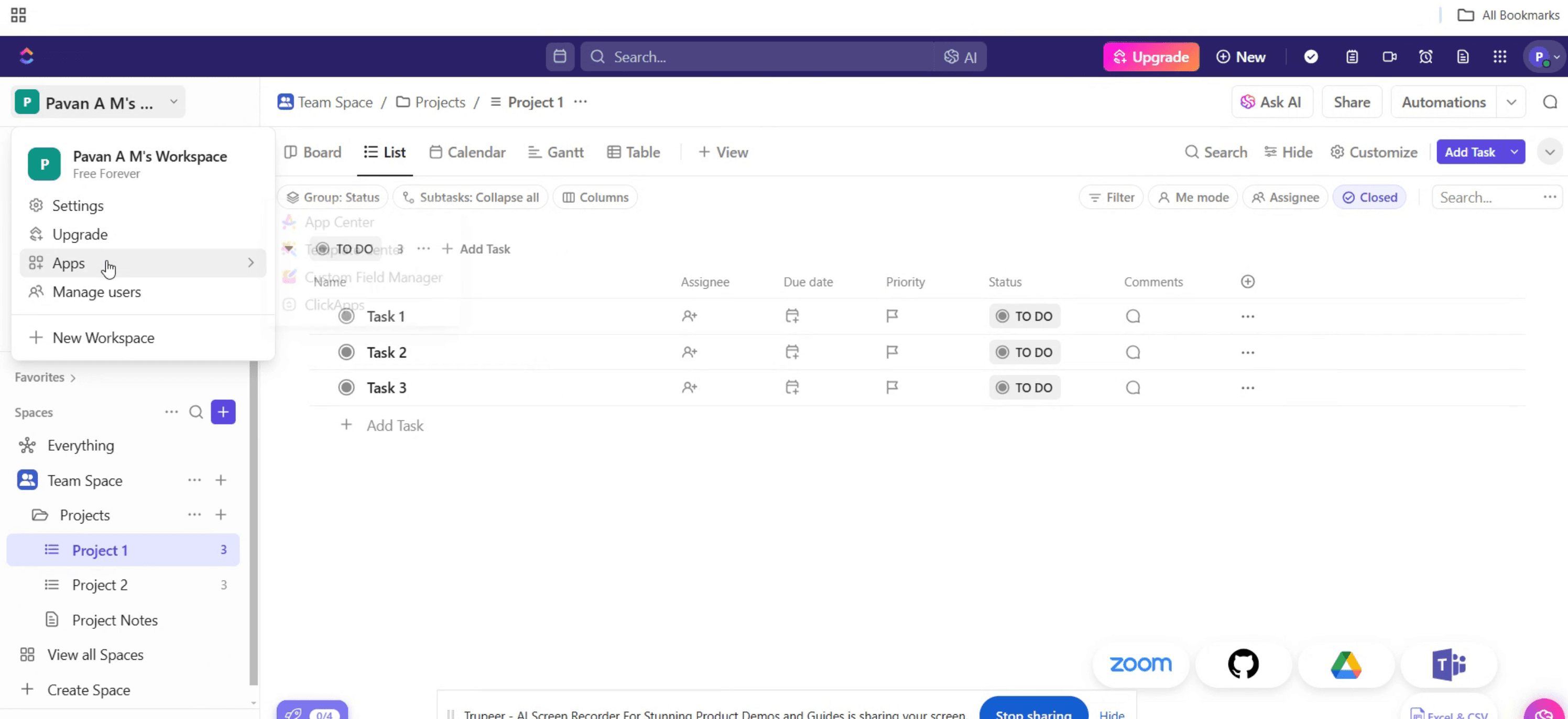 Habilita la función de Correo electrónico en ClickUp navegando a ClickApps en la configuración de ClickUp.