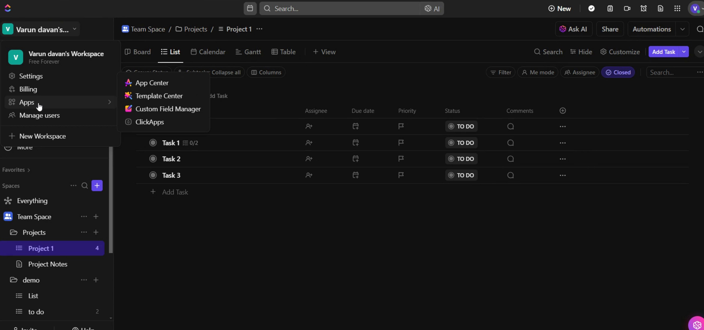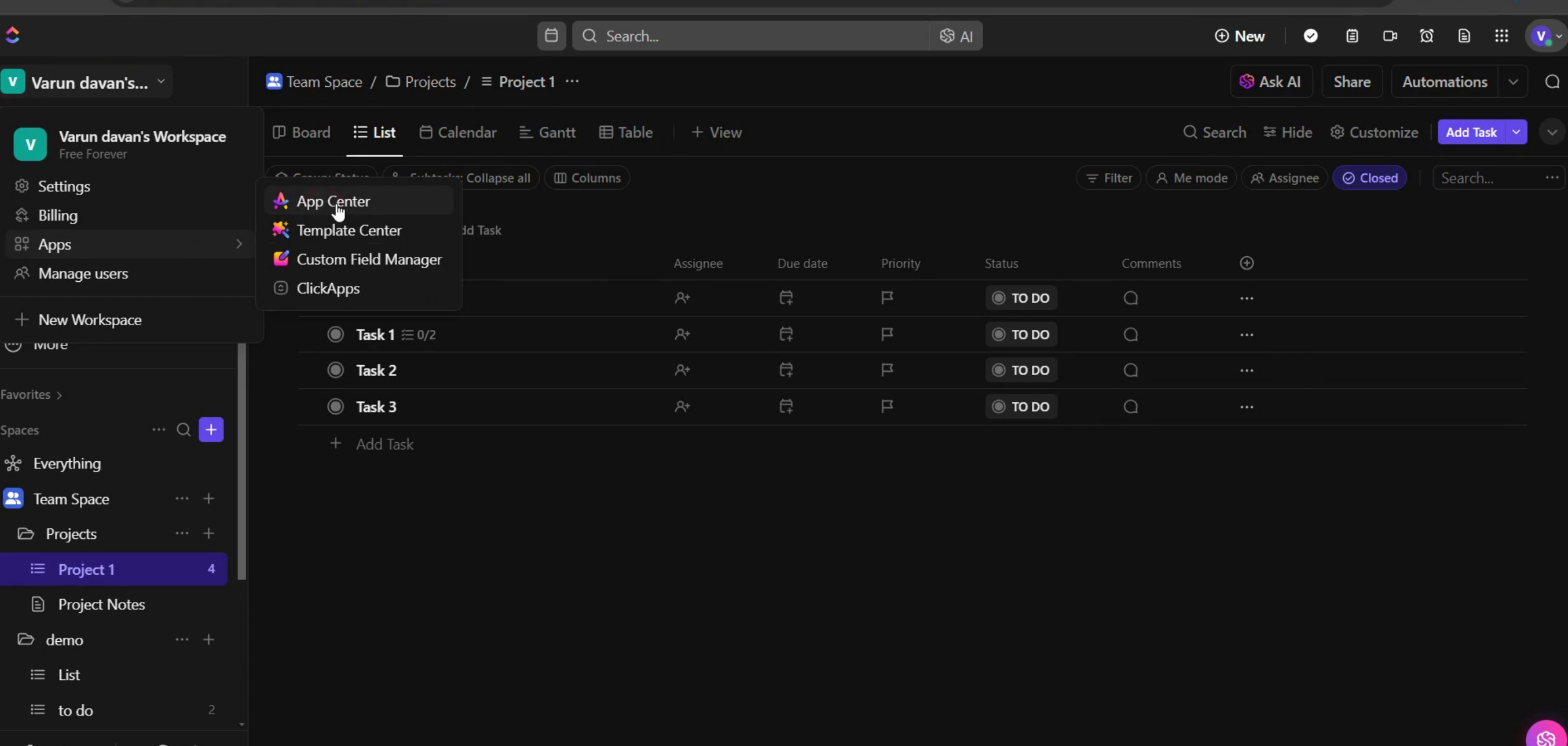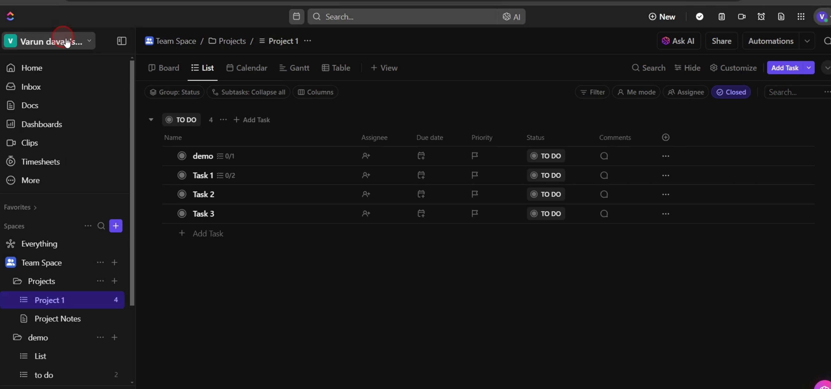 Localice y seleccione el nombre del espacio de trabajo dentro de Click Up.