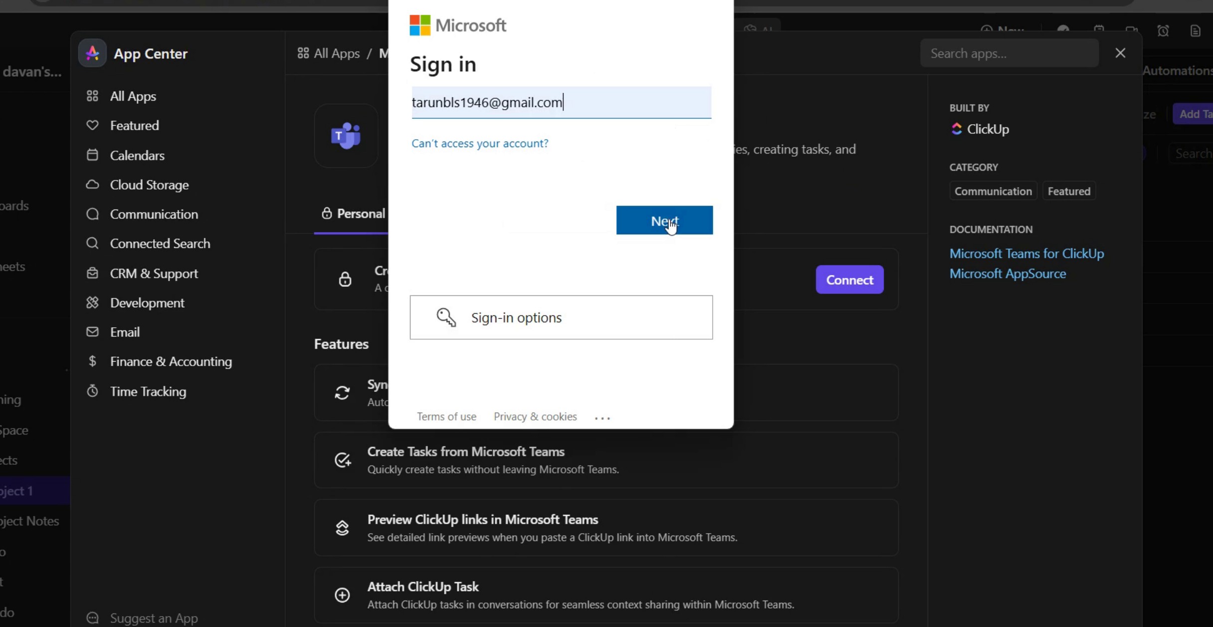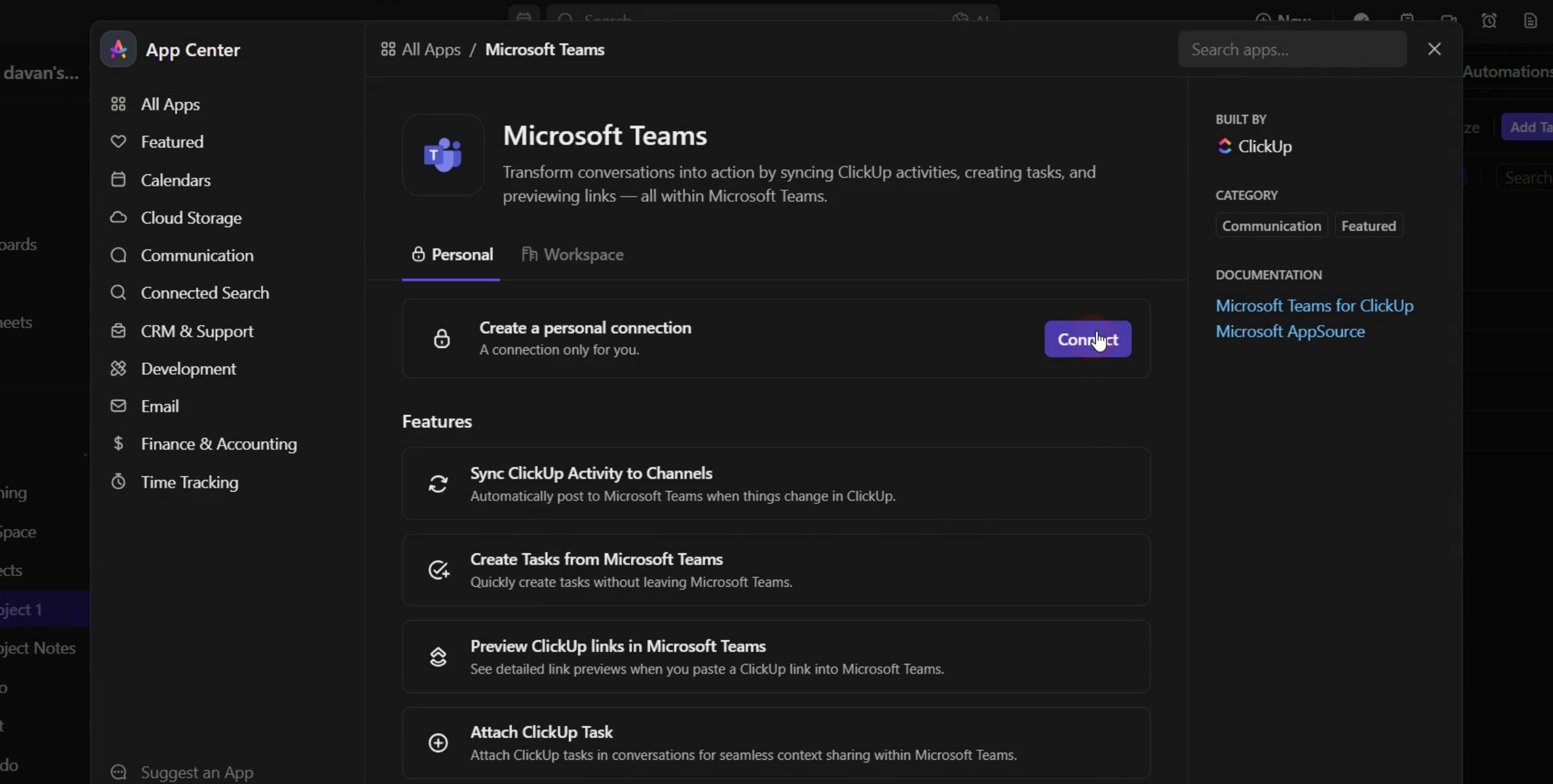 Utilice la aplicación de Click Up para Teams – Instale la aplicación de Click Up en Microsoft Teams para acceder a tareas, notificaciones y actualizaciones directamente desde su espacio de trabajo de Teams.