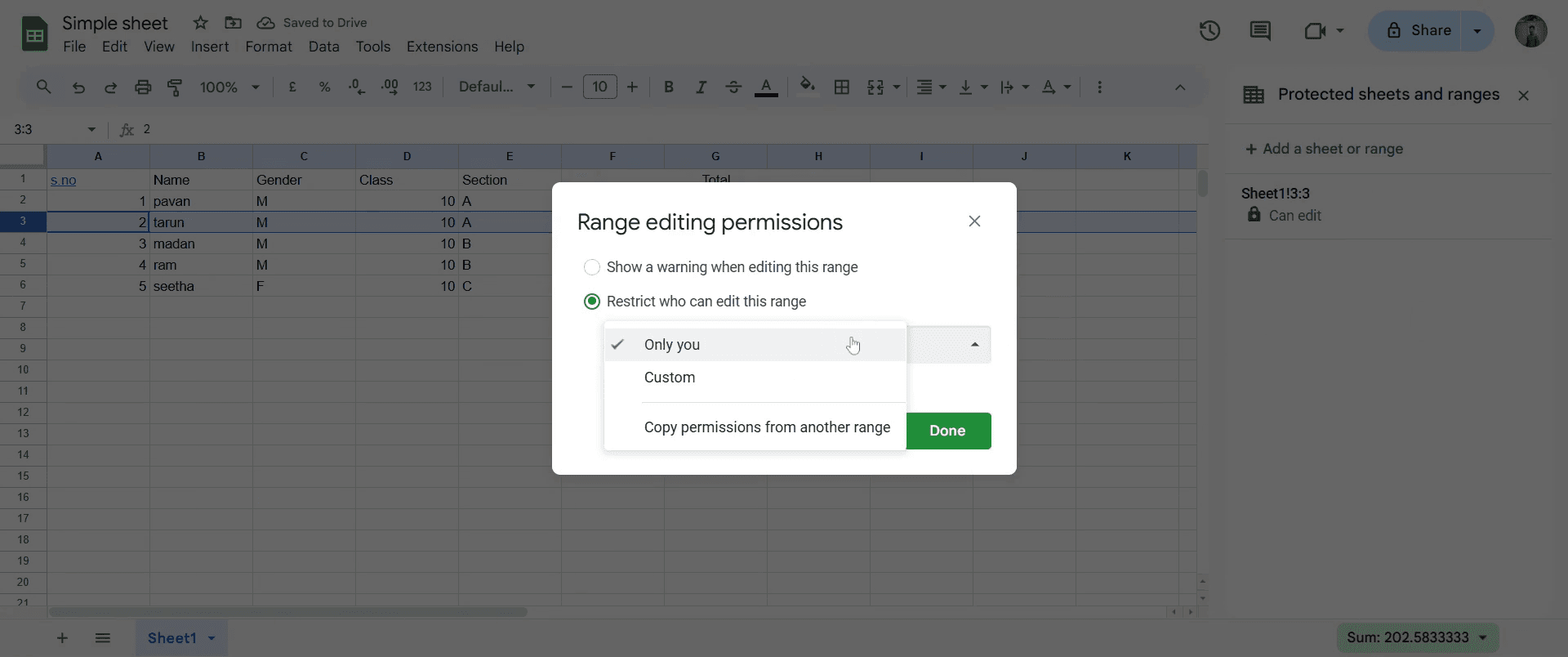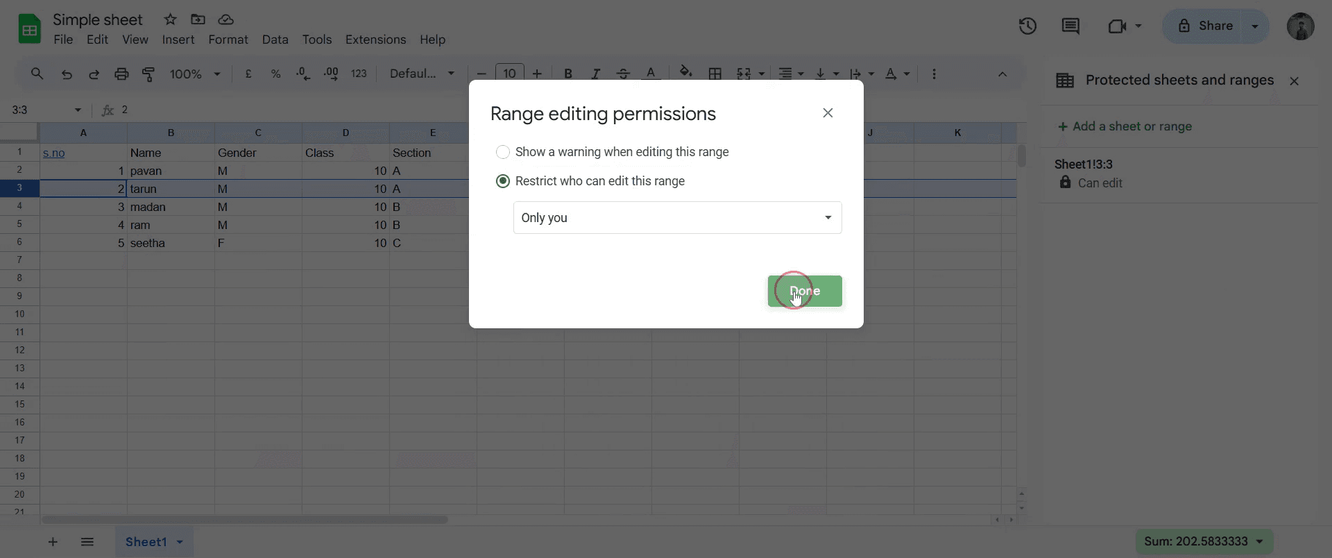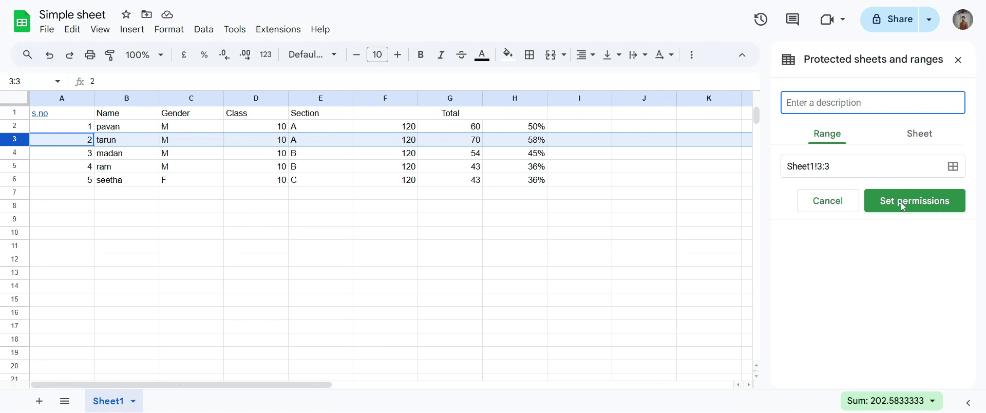 Usa Datos > Proteger hojas y rangos para restringir la edición a usuarios específicos.¿Puedo bloquear filas y columnas al mismo tiempo?