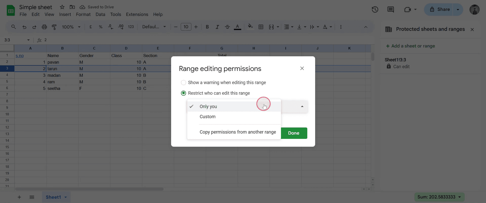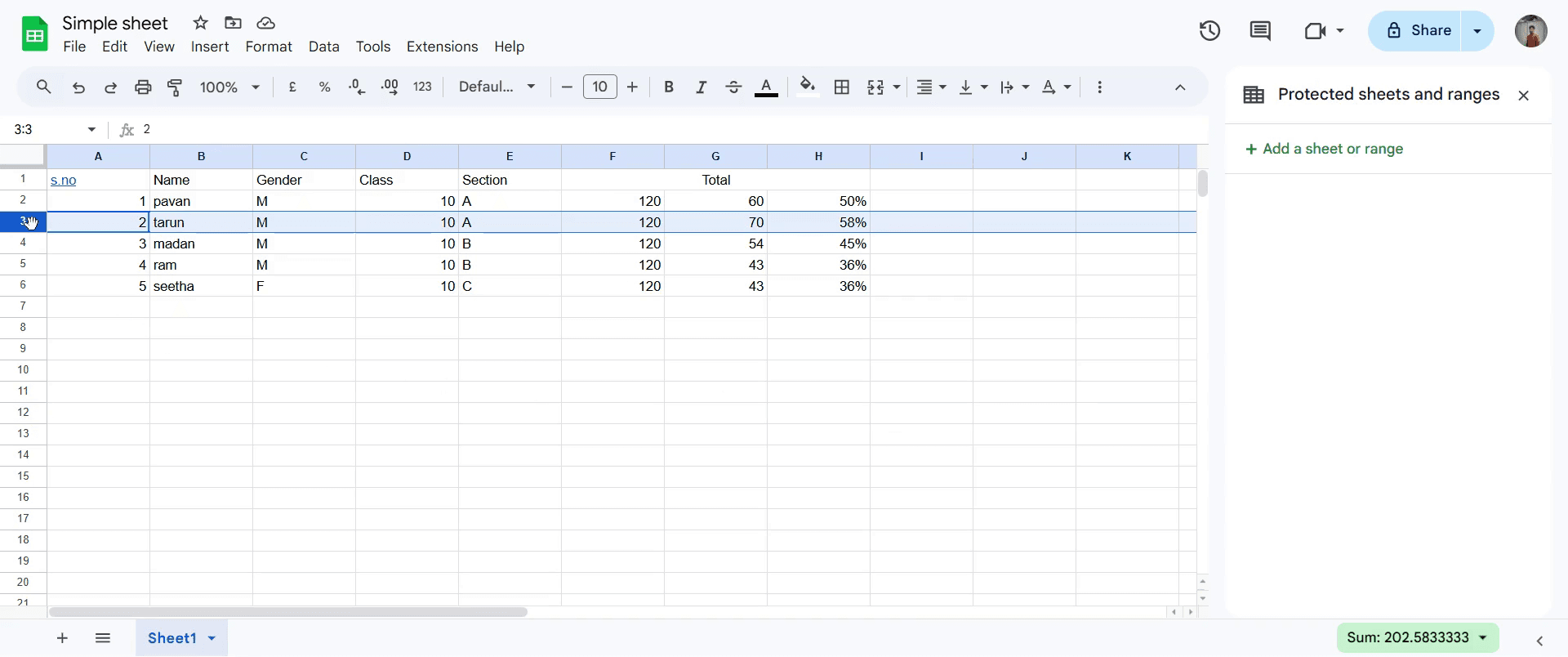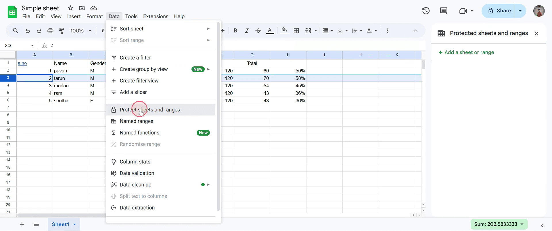 Usa Datos > Proteger hojas y rangos para restringir la edición a usuarios específicos.¿Puedo bloquear filas y columnas al mismo tiempo?