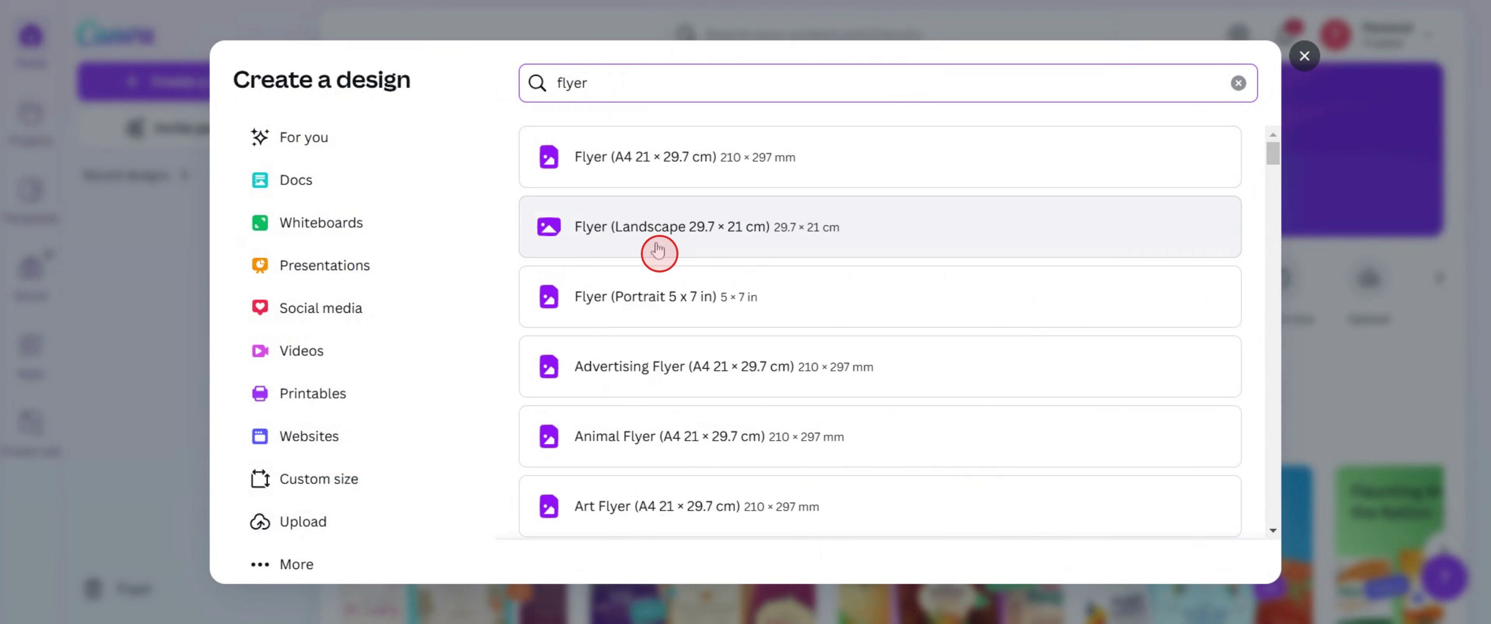Configura las dimensiones correctas desde el principio – Antes de diseñar, selecciona Tamaño personalizado e introduce las dimensiones horizontales preferidas para asegurar un formato correcto.