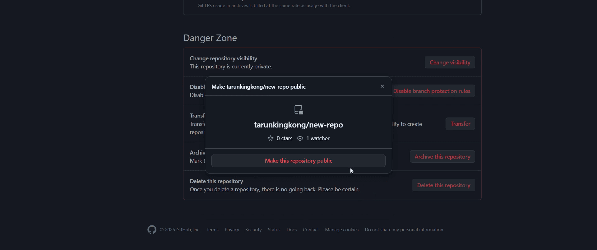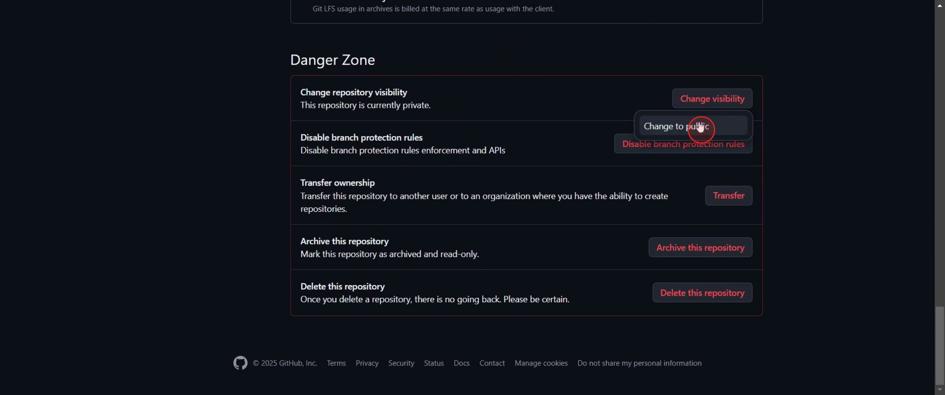 Asegúrate de entender las implicaciones y continúa haciendo clic en Make repository public.