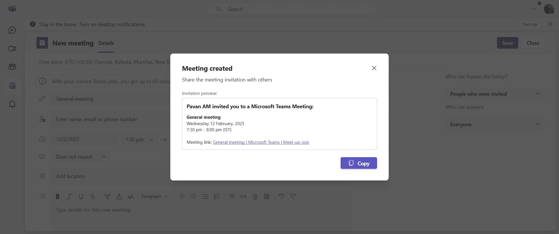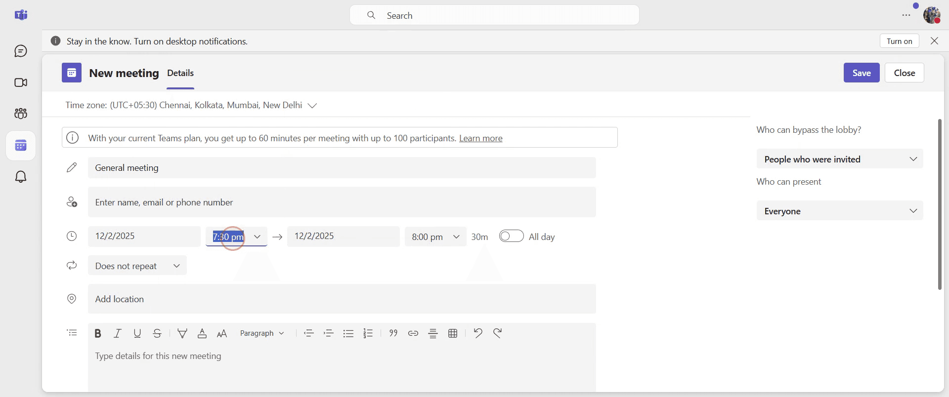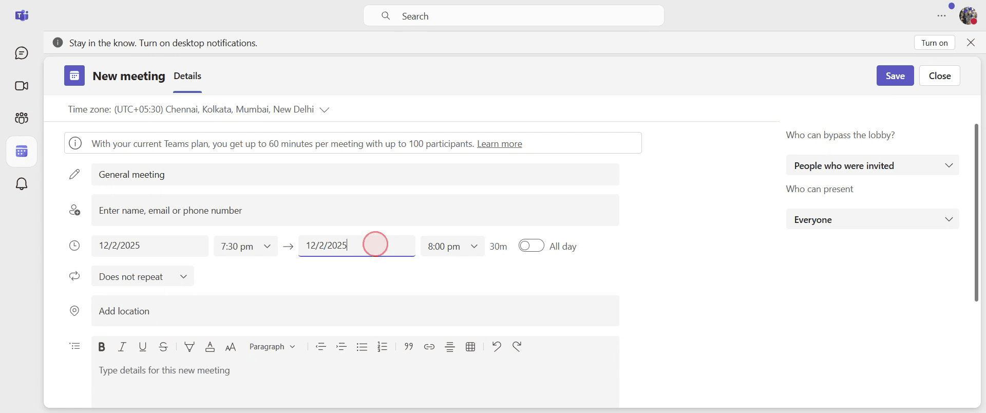 Consejos profesionales para programar una reunión de Teams